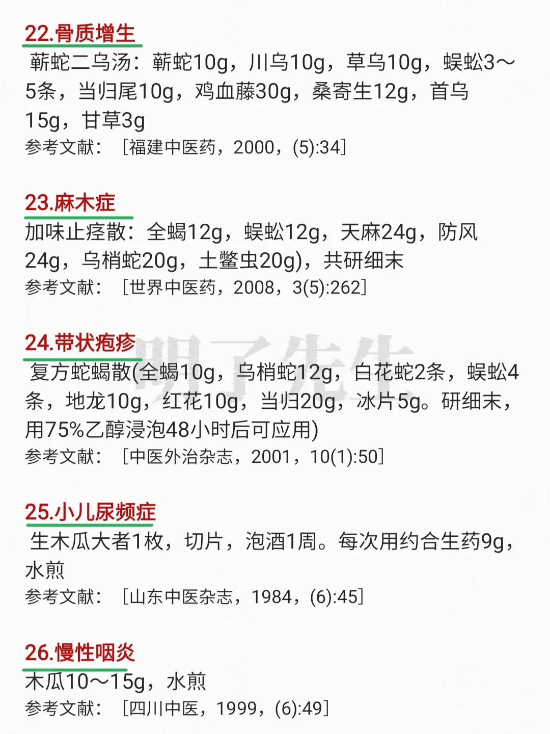 老一辈中医人遗留的效验良方,收集