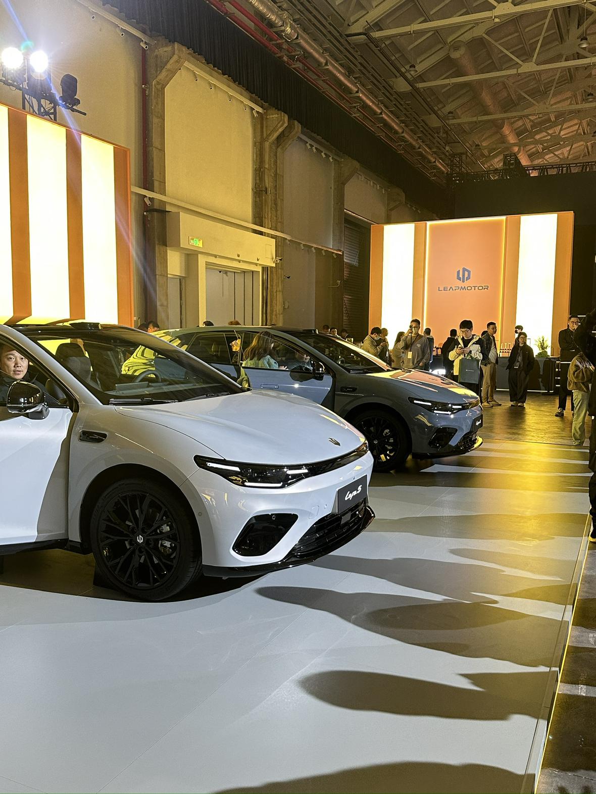 外场的零跑Lafa5,今晚是全系颜色都来了~ 我感觉银白和粉色都挺好看的~ 摩根