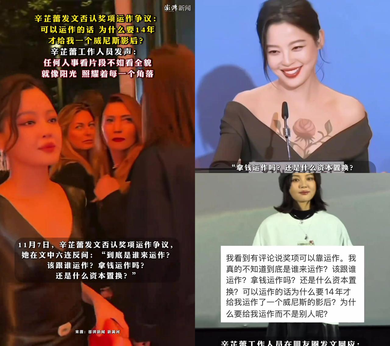 内娱最亏的影后?拿了威尼斯奖却被说运作,她的反问比奖更触动人心! 咱们内娱什么样?有的小花刚出道就拿顶奢、拍S+剧,连个配角奖都要靠热搜刷存在感。 辛芷蕾呢?《绣春刀2》丁白缨一刀劈碎武侠梦,《长江图》安陆美得像谜,可14年里她连流量小花的边都没沾过。 要是真能运作威尼斯,她早把自己运作成资源咖了,哪会等37岁才拿这个奖? 她的灵魂三问太直击人心:“能运作的话,为什么要等14年?为什么是我不是别人?为什么不先运作内娱的资源?” 可不是吗?她要是有这本事,早在内娱被捧成顶流了,犯得着等14年? 她的奖哪是突然掉下来的?是《日中天》里的角色磨了半年,是14年每部戏都往角色里钻的积累。 就像她工作人员说的,看全貌像阳光,她的实力早藏在每一场戏里了。 有人说内娱运作比实力管用,可辛芷蕾用14年证明:有些奖,等比抢更金贵。 大家觉得,内娱的捷径和笨功夫,到底哪个能走得更远?