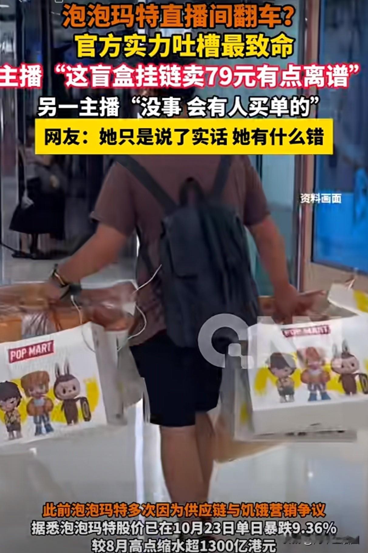 泡泡玛特直播给大家上了生动一课, 对主播来说,可不能啥话都说,一不小心就可能万劫不复;对顾客来说,可不能啥盲盒都买,可能你就是下一个冤大头。 79一个盲盒挂链,到底贵不贵?如果单论它的实际价值,真的有点贵,有人预测出厂价也就10块钱左右。 可是它带给人的愉悦感和满足感,是无法用金钱衡量的。 买盲盒,就是一个愿打一个愿挨。世间事有千万种,你做不到所有人都习惯,开心就好。 主播无意间的随口吐槽,让让企业处于风口浪尖。这个社会,我们都太敏感了。
