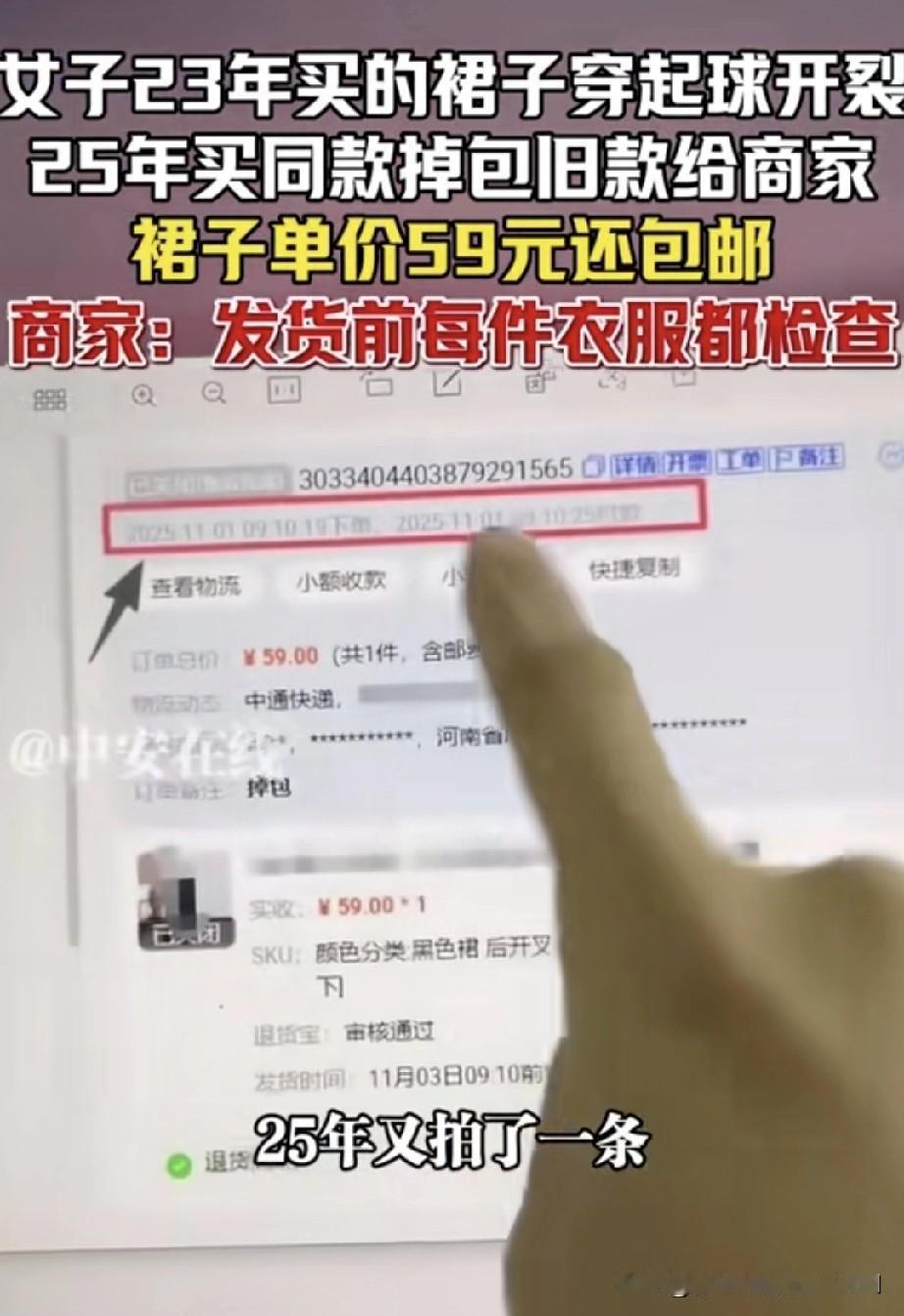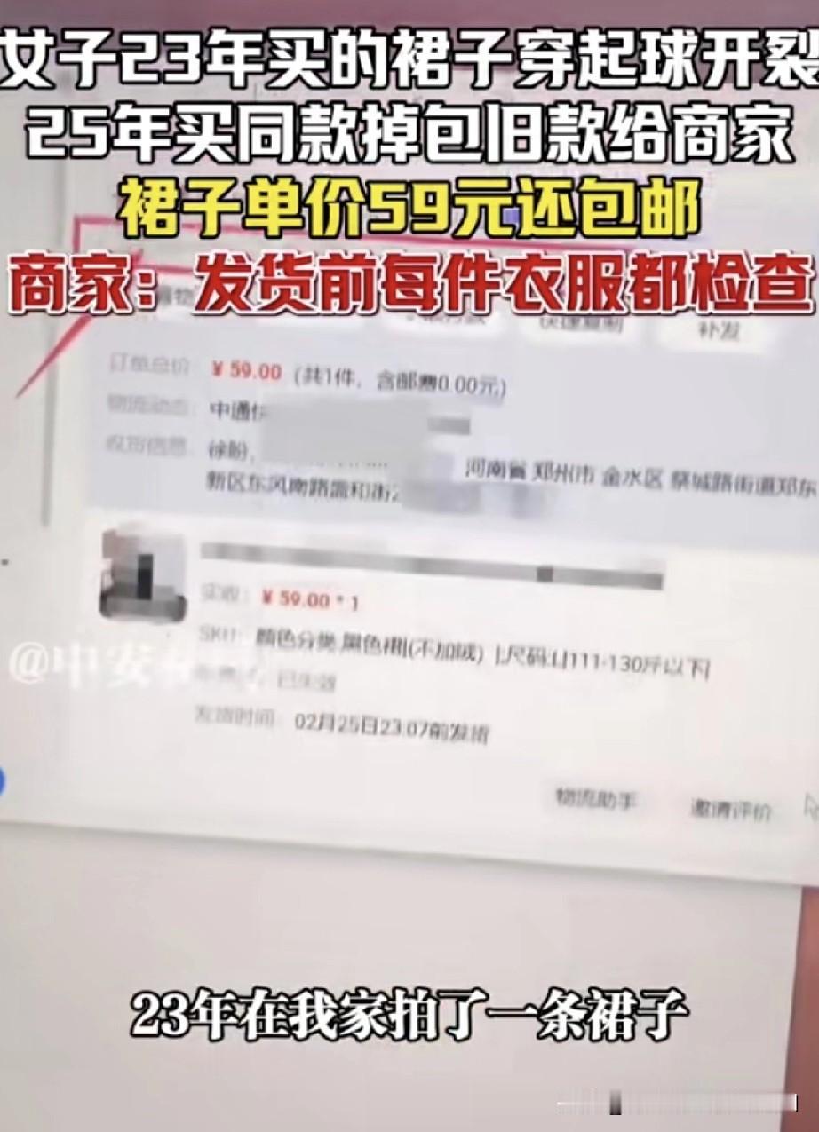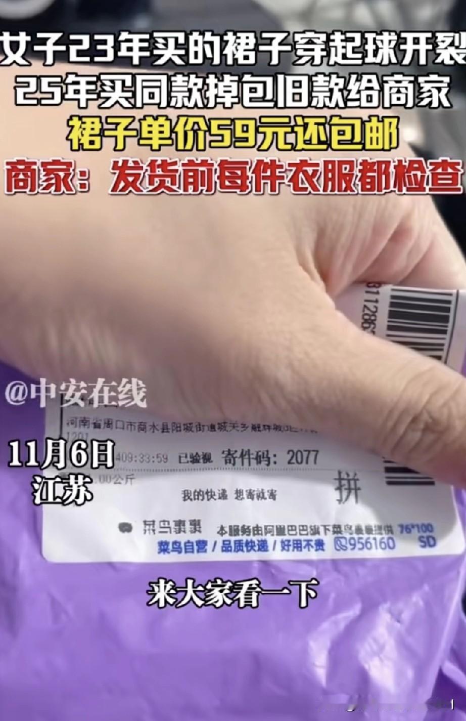 江苏一位服装店老板发布视频,曝光了河南周口市商水县的一名女性网购顾客。该女子在23年买的裙子,穿到起球开裂。25年,她又在这家网店购买同款裙子,接着找各种理由退货。 服装店老板收到退货后,发现裙子被调包了,顾客把旧裙子退回,想用旧的换一件新的。这条裙子单价才59元,还包邮,至于这么做吗?难不成这位顾客这辈子都不打算花钱换新衣服了? 服装店老板娘气愤地说:“我们发货时,每件衣服都会仔细检查后再打包。你把旧衣服寄回来,当我们看不出来吗?衣服上一股洗衣粉味,你是日子过不下去了吗?23年买的裙子觉得不错,穿坏了就想不花钱来换新的,这都是什么人啊,真不敢相信会有这种事、这种人,太不可思议了,简直是‘人才’!这么搞,花一件衣服的钱就能天天穿新衣服。遇到这种毫无下限的人,就真的没办法了吗?”