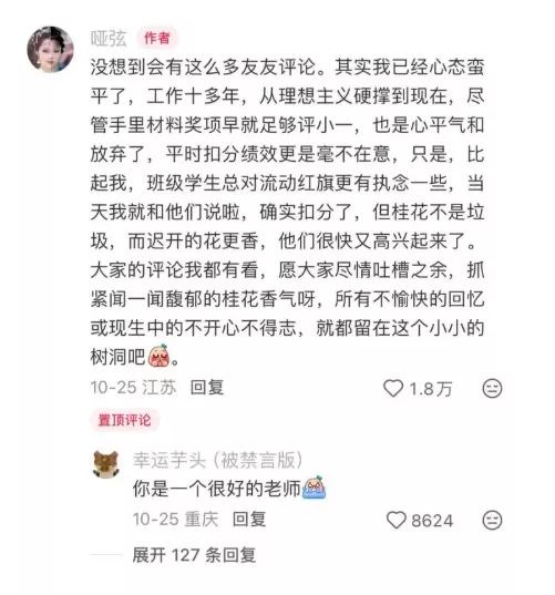 三朵飘落的小桂花成了“形式主义”的垃圾,可笑啊! 最近江苏一老师吐槽!班级因台阶掉落的桂花被扣分,学生委屈哭诉。老师一句话点醒全网,桂花不是垃圾,迟开的花更香! 这事儿一下子炸出无数奇葩经历。有学校要求扫光所有落叶(可风一吹又掉!),有宿舍因垃圾桶有垃圾扣分。更绝的是,学生进门必须走直线,拐直角弯,活脱脱人形流水线。这哪是教书育人?分明是铲除一切不整齐的麻烦! 走出校门,这套逻辑还在上演。蜜雪冰城招牌被强制换绿色,医院红十字变绿十字,店主贴张A4纸招聘竟被城管追罚。你们是图管理方便了,可当城市招牌统一成黑色一条街,和丧葬队有啥两样? 过度追求整齐,只会把人淹没在群体里。真正的活力,恰恰藏在那三朵桂花,一片落叶的参差中。允许台阶有落花,青春才有棱角啊!