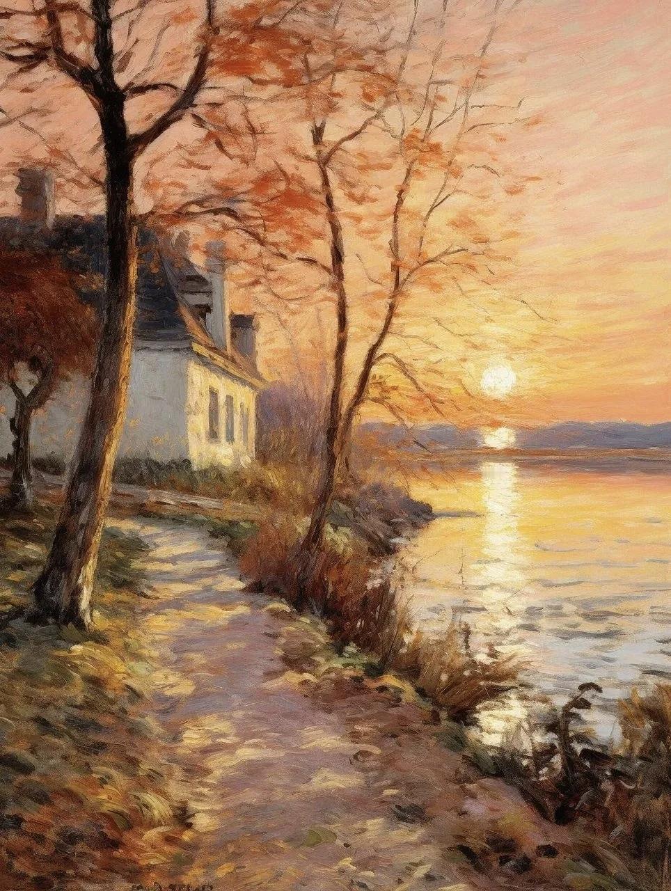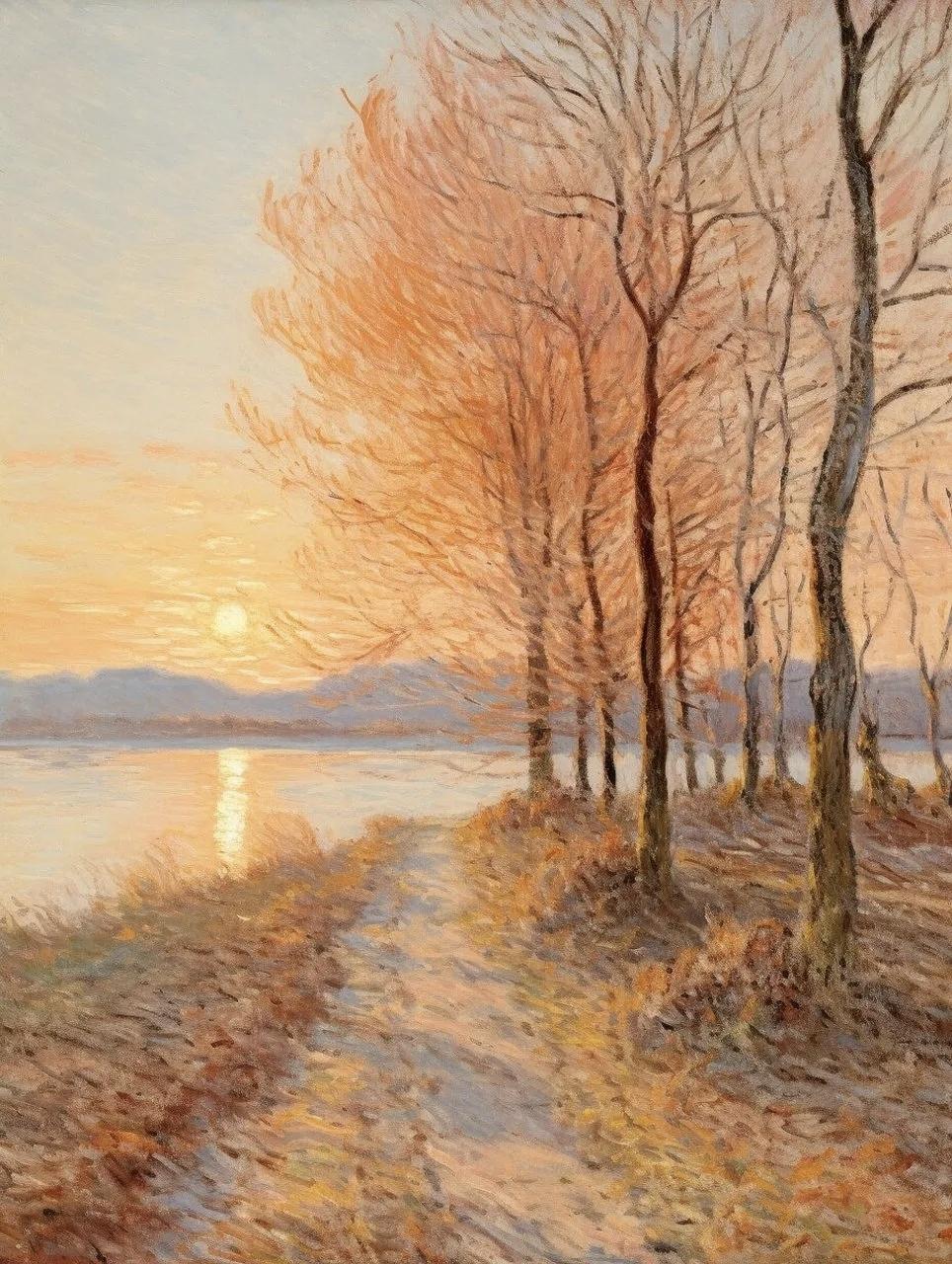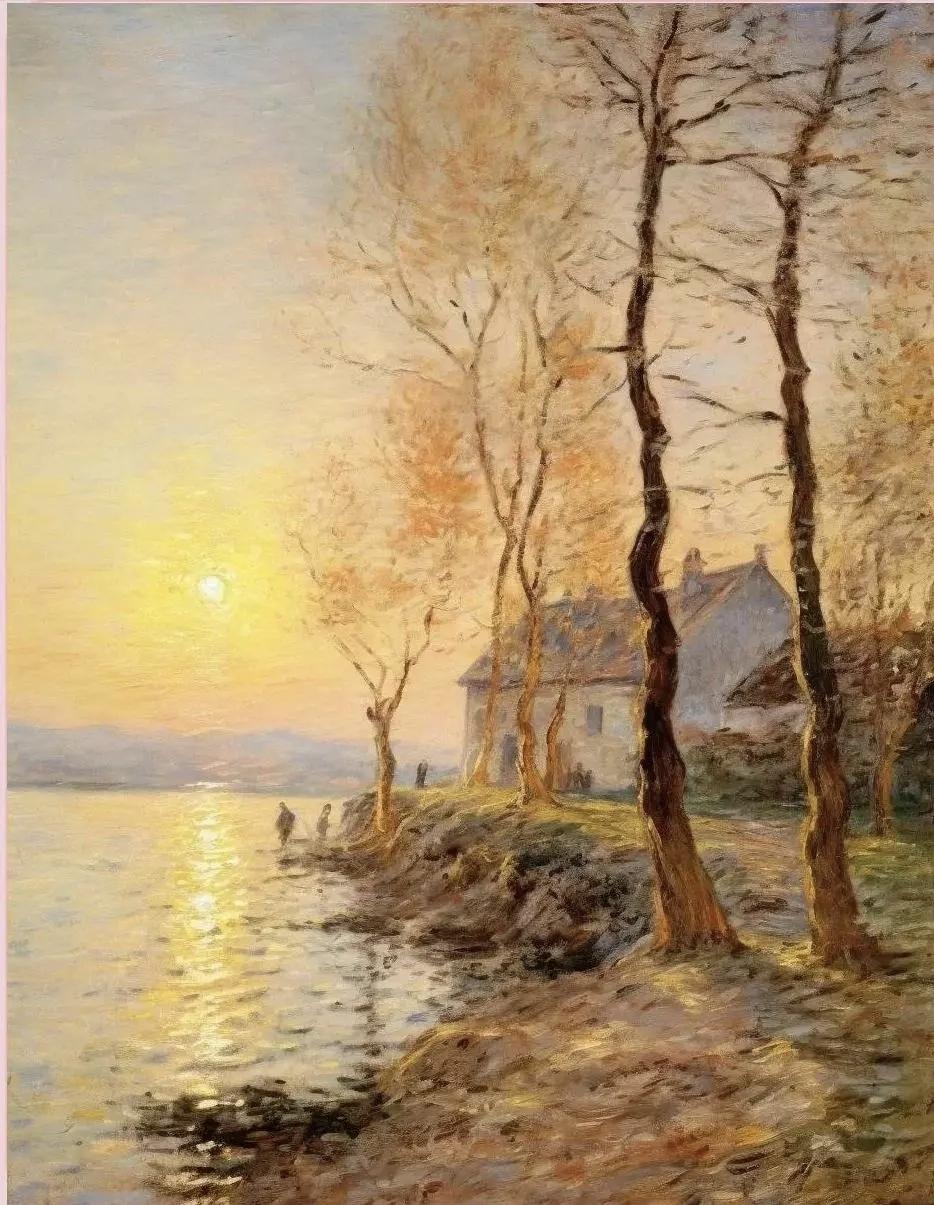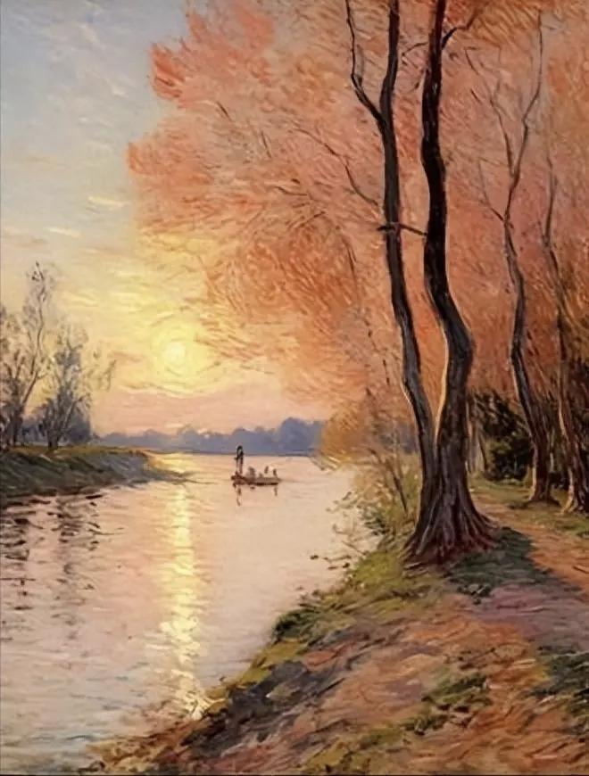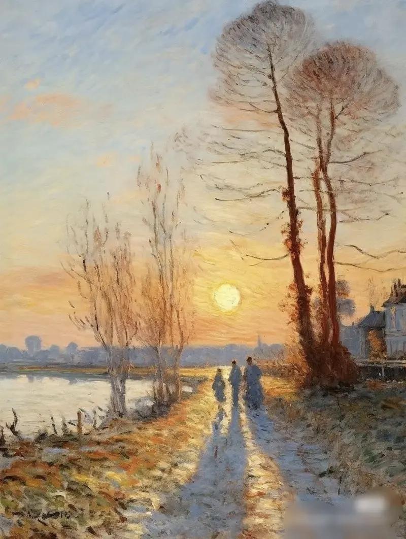 招架不住了,西斯莱笔下的落日真要命!风景油画 手绘油画 油画 带你走进画
