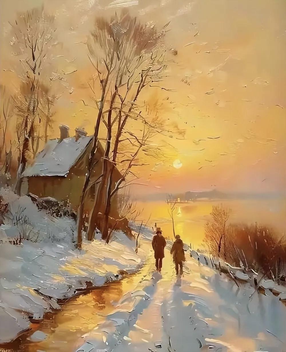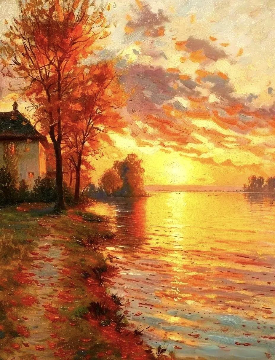 招架不住了,西斯莱笔下的落日真要命!风景油画手绘油画油画带你走进画