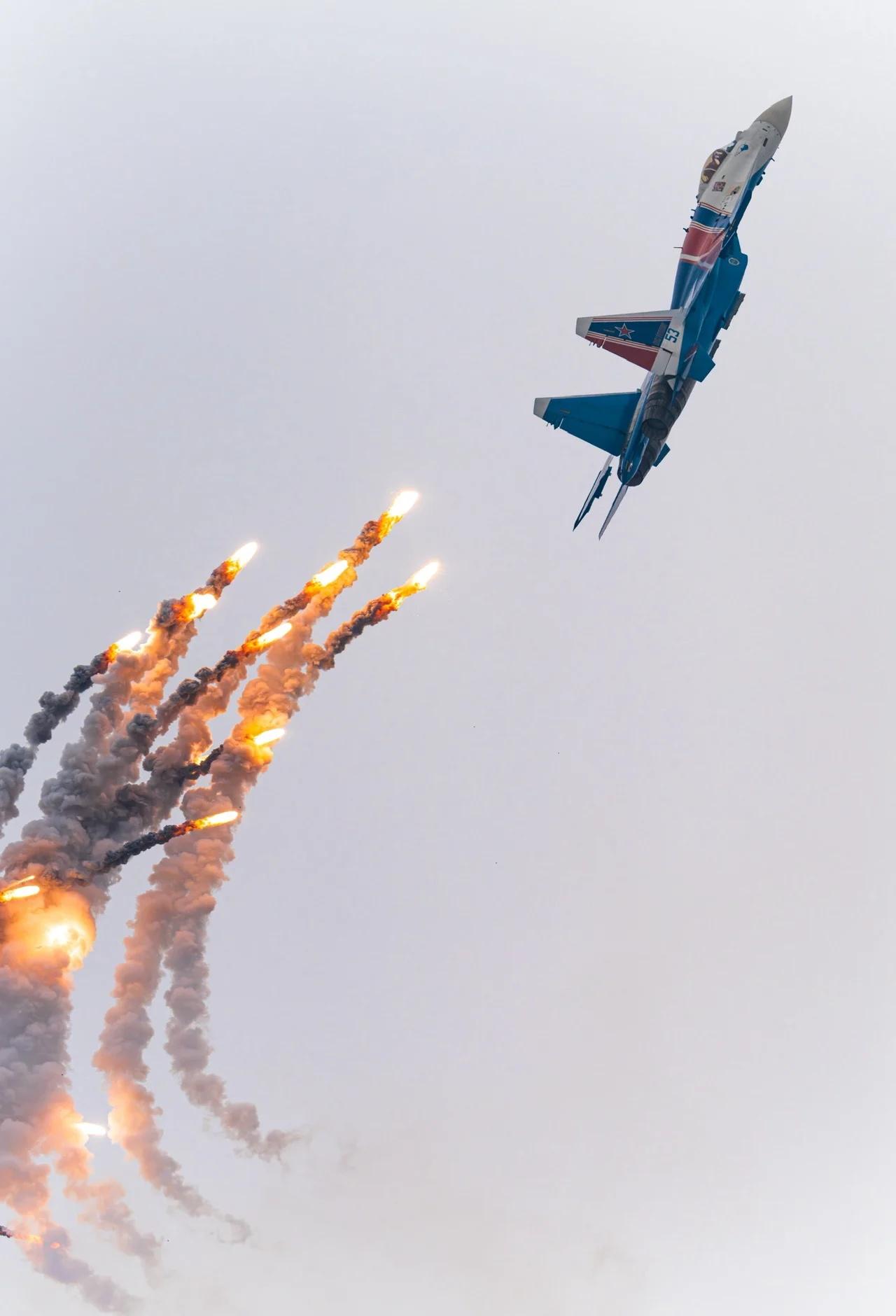 烈焰之花 凌空绽放金色箭雨 干扰弹如烈焰之花震撼 在南昌看每天都不一样的俄罗斯勇