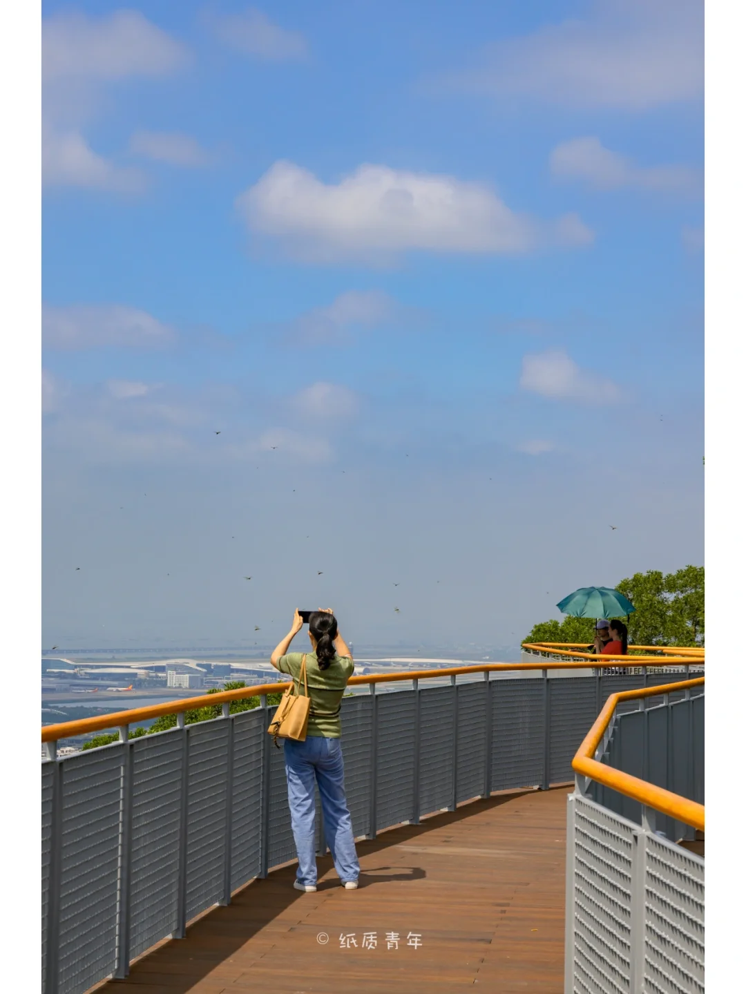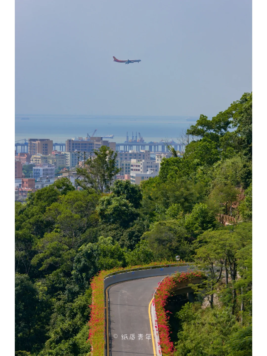 4️⃣从观海台的凉亭继续往上走可以看到一个阶梯,阶梯上去就是云阁碧空,这里是观海的较好位置。中午的时候往宝安机场落地的飞机✈️教多,比较容易出片📸。