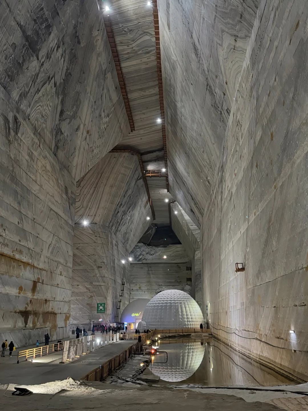 🔹Unirea盐矿:这是对公众开放的主要部分,地下大厅规模宏大,令人震撼,深度达208米,由于其巨大的空间和稳定的微气候,它曾被考虑作为核战避难所