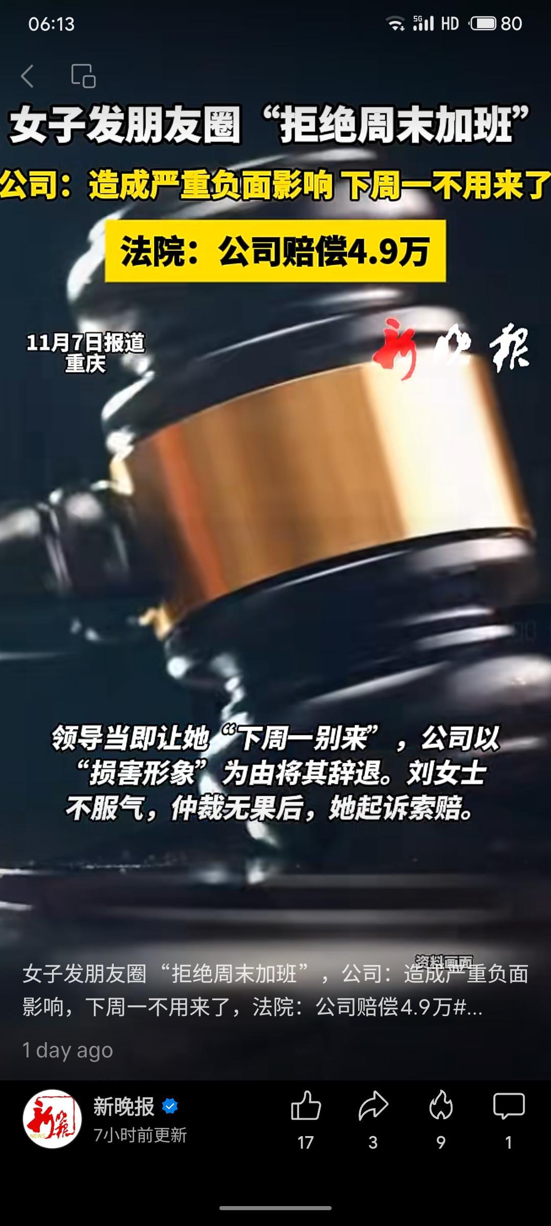 重庆刘女士因在朋友圈拒绝周末加班,被公司以“损害形象”为由辞退。法院审理认定,公司依据的制度系事后制定,程序违法,判决公司支付4.9万元赔偿。此案明确用人单位单方解除劳动合同须依法依规。