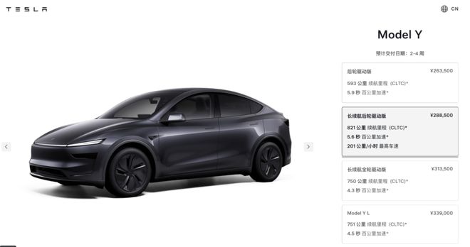 11月8日,特斯拉中国官网正式上线了ModelY长续航后轮驱动版,售价28.85万元起,预计交付日期2~4周,并提供5年0息、8000元车漆选装礼金、特享充电权益等权益。