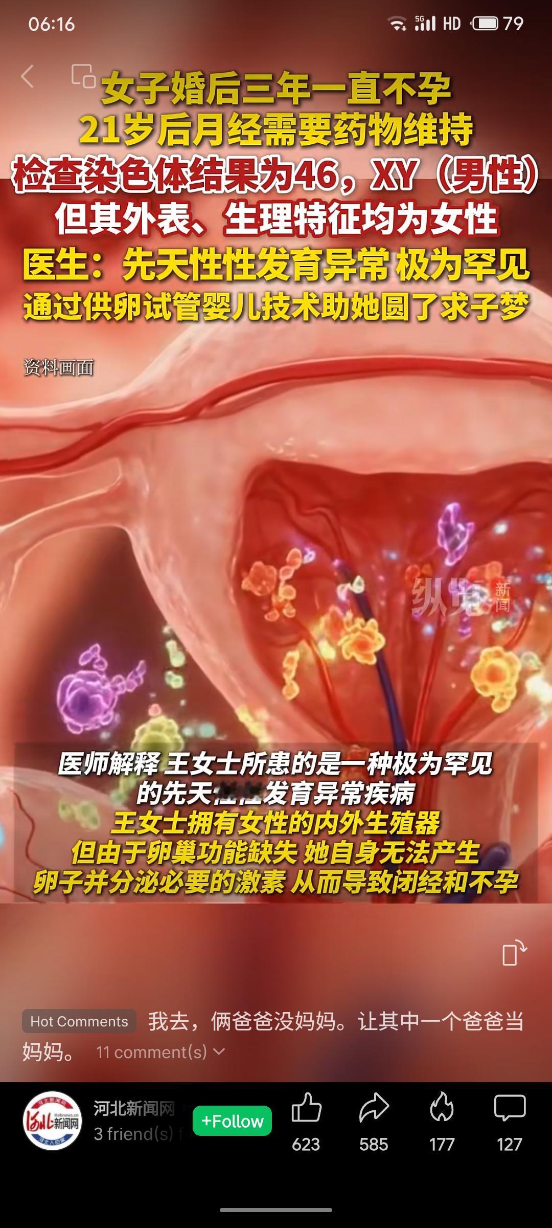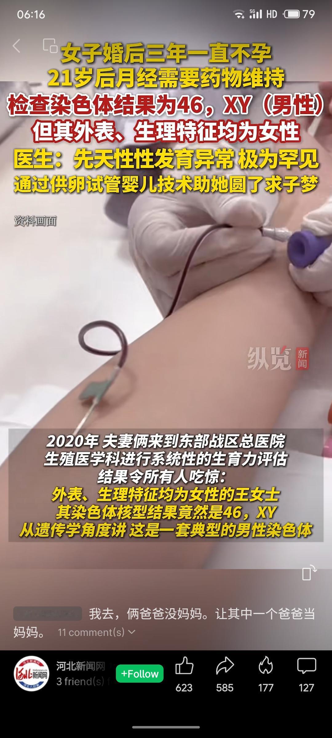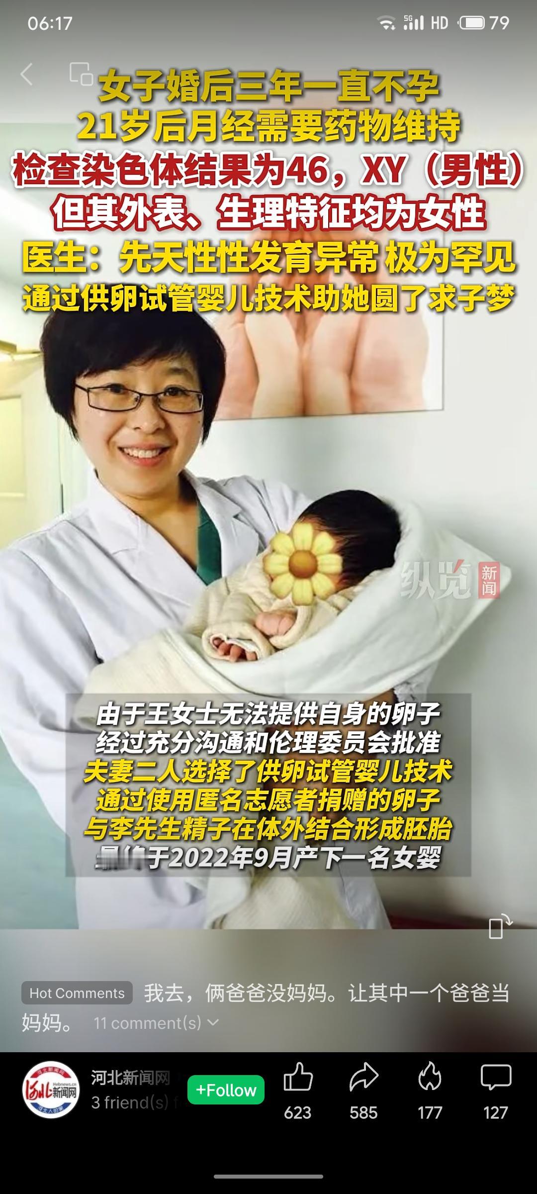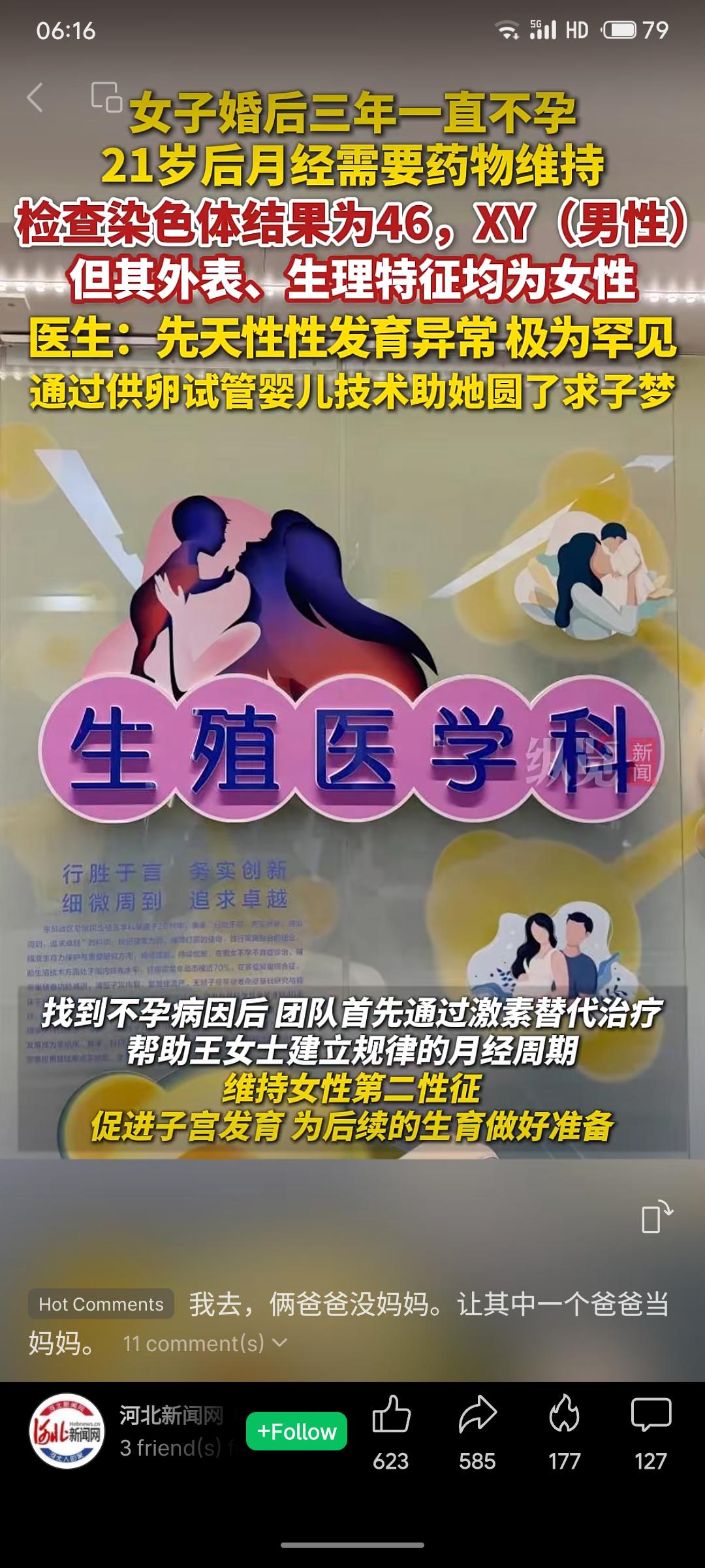 一位染色体核型为46,XY(典型男性染色体)的王女士,因先天性性发育异常,拥有女性内外生殖器但无卵巢功能,导致不孕。经东部战区总医院诊断,通过激素治疗和供卵试管婴儿技术,她最终成功诞下一名女婴。此罕见病例展现了现代医学辅助生殖技术帮助特殊群体实现生育梦想的可能性。