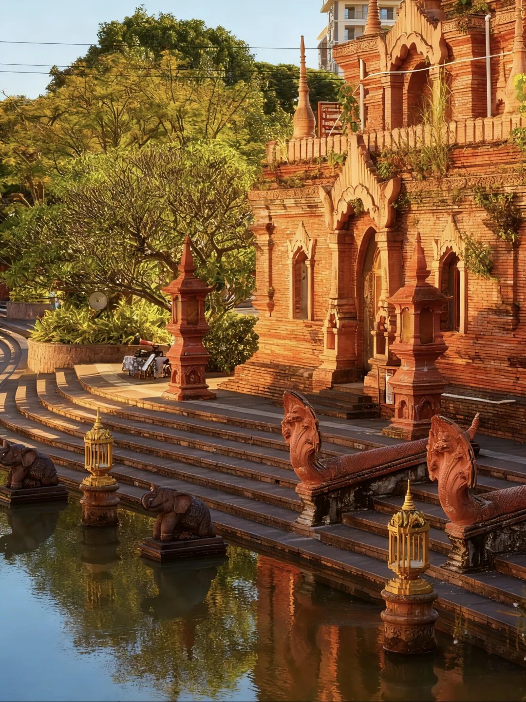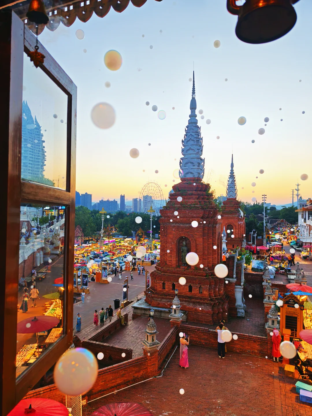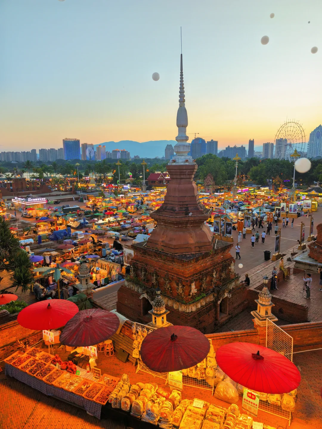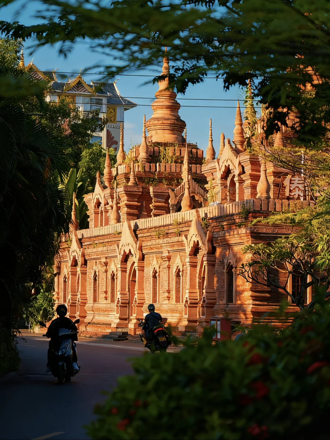 这里的夏天永不停歇 连风都带着菠萝蜜的甜香 降落在嘎洒机场时 热带的风裹挟着雨林气息扑面而来 作为一个常年在路上寻找治愈的旅行博主 这次决定用48小时 沉浸在这座东南亚风情的边陲小城 🌴 行程安排 DAY 1 总佛寺➡️曼听公园➡️傣乡水城➡️悦莲庄 DAY 2 中科院植物园➡️般若寺➡️星光夜市 🌴景点推荐: ❶总佛寺 穿浅色长裙,蹲在菩提树下拍光影,或站在白塔前拍侧影,金顶与蓝天是天然背景板 ❷曼听公园 这里是昔日傣王御花园,御象咖啡厅的绿植墙、放生湖的回廊、红墙下的竹影,下午4点后光线最温柔 ❸傣乡水城 华灯初上时最美,倒影在水中的傣楼灯光如繁星坠落 ❹ 中科院植物园 王莲池(需坐小船)、百花园的蝴蝶、荫生植物区的雾气,穿白色裙子更仙 ❺般若寺 纯白佛塔在蓝天映衬下圣洁无比,建议傍晚前来,落日余晖会给白塔镀上金色光晕 ❻星光夜市 从酒店散步十分钟即达,在千盏灯火中感受东南亚最大夜市的烟火气 🌴「悦莲庄莲府」 是这次旅行最明智的决定 星光夜市的喧嚣近在咫尺却又恰到好处地遥远 270°无边泳池如同嵌在热带雨林中的蓝宝石 傍晚时分 落日会把整个泳池染成香槟色 我倚靠在泳池边俯瞰 告庄的灯火次第亮起 像星星坠落人间 这种chill的感觉 就像一首悠扬的爵士乐 在心底缓缓流淌