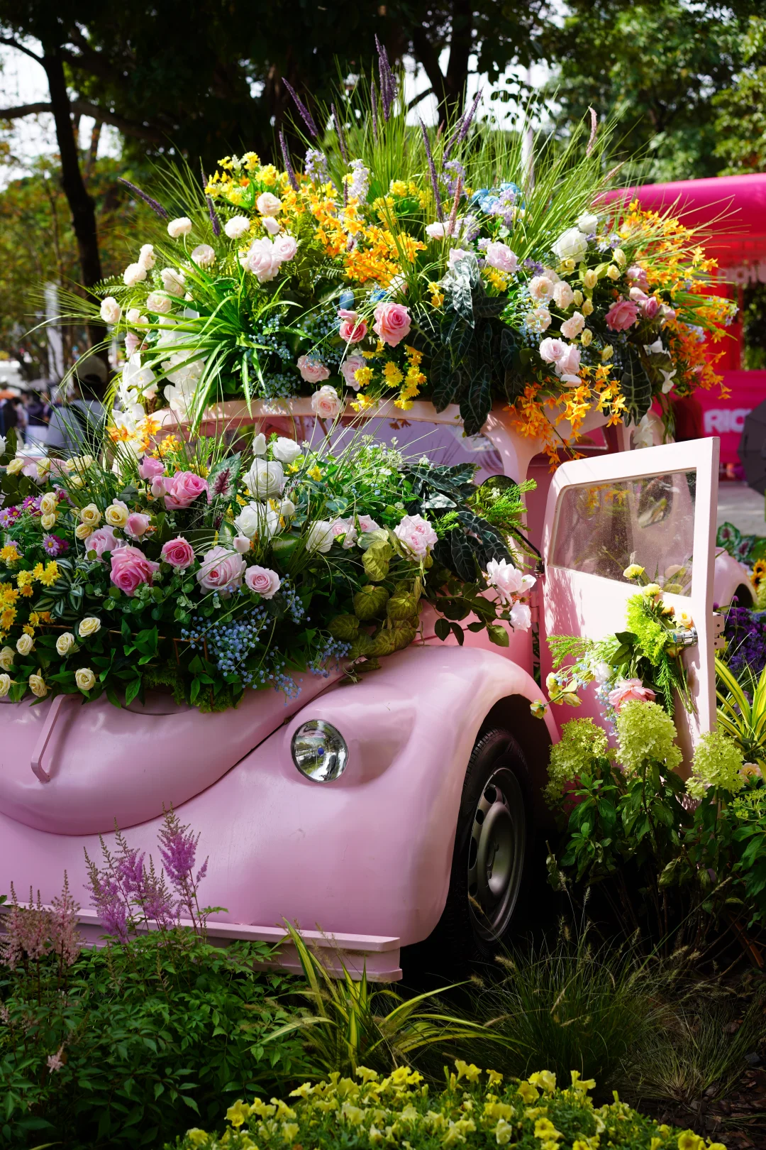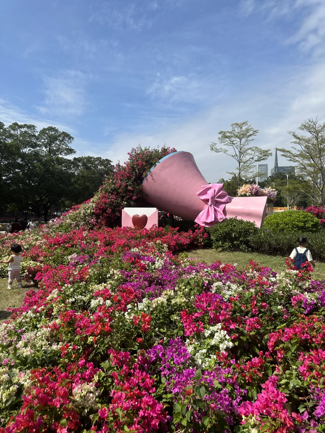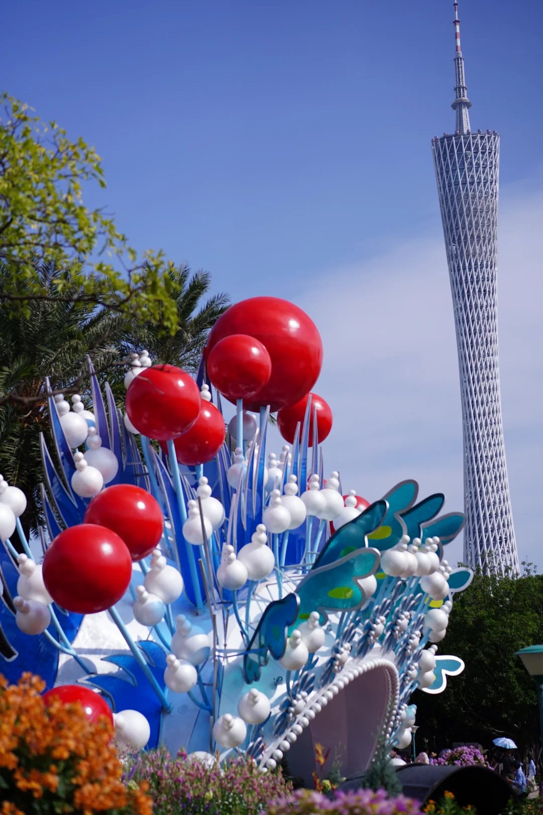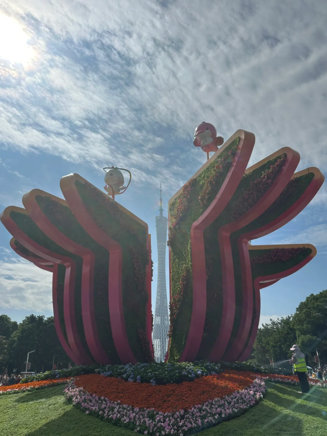 园博会ABDE区,最美部分在DE区,即正对小蛮腰的左手边方向,粉色小花车、巨型花束💐蝴蝶竖琴等,小蛮腰的右边,AB区主要是巨型木棉花