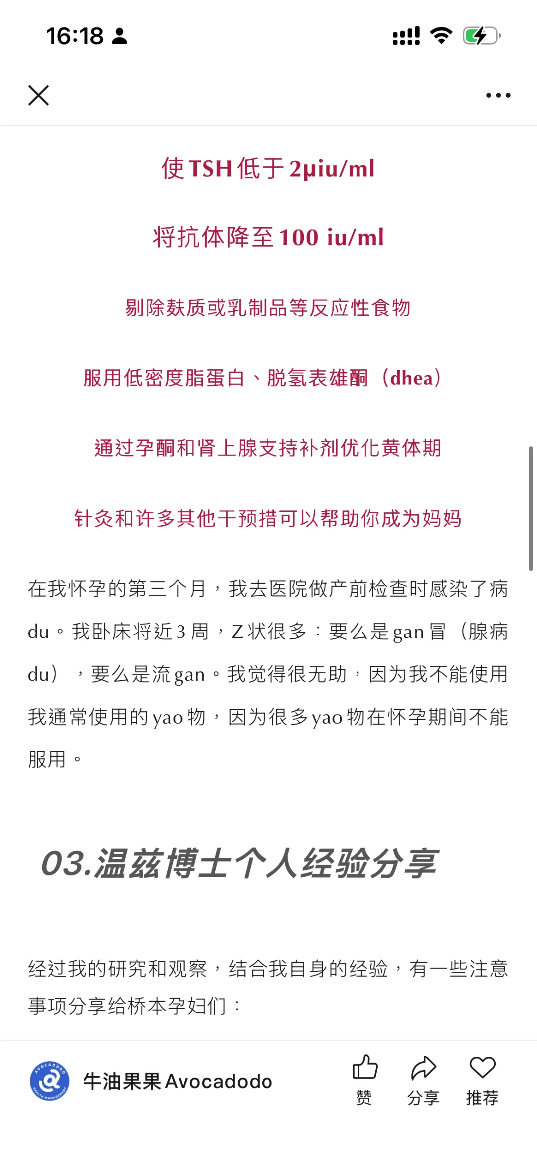 很多姐妹都是在备孕期间做检查时查出来桥本的,果果也不例外。虽说桥本人在孕产上相比健康的女性会相对困难些,但若能维持好抗体指标,也是有机会顺利怀孕的~ . 今天果果就翻译了温兹博士自己的孕产经验,来为正在备孕或是已经怀孕的桥本姐妹们带来一些希望,并给大家一个明确的干预方向。