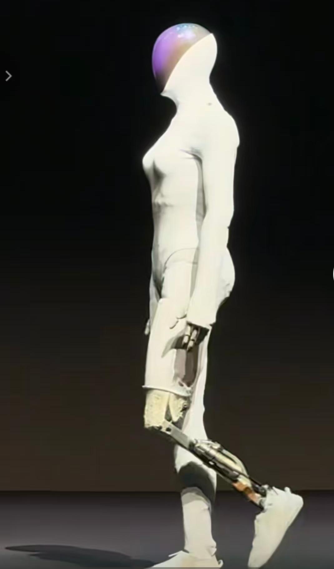 由于小鹏把这个美女机器人做得太像,特别是那轻盈的步伐,网友质疑这是把真人藏在里面了吧! 有眼尖的网友,看到机器人头上有耳朵凸出的痕迹,说难道机器人有耳朵吗?这不可能吧! 还有人说,虽然全程机器人腹部和胸部没有呼吸动作,但是何小鹏就让机器人快速下去,这是怕里面的真人憋坏了吗? 面对质疑,小鹏连忙卸掉机器人腿上的皮肤,露出机械骨架,以为可以堵住那些怀疑之声,那成想,有人竟然说这里面不会是个残疾人吧! 何小鹏团队,把机器人外衣脱掉,还解释了为什么机器人有耳朵轮廓,因为机器人也有听力设计! 小鹏的机器人连马斯克都拍案叫好,真心为我们有这么多年轻且聪明的人才感到自豪!