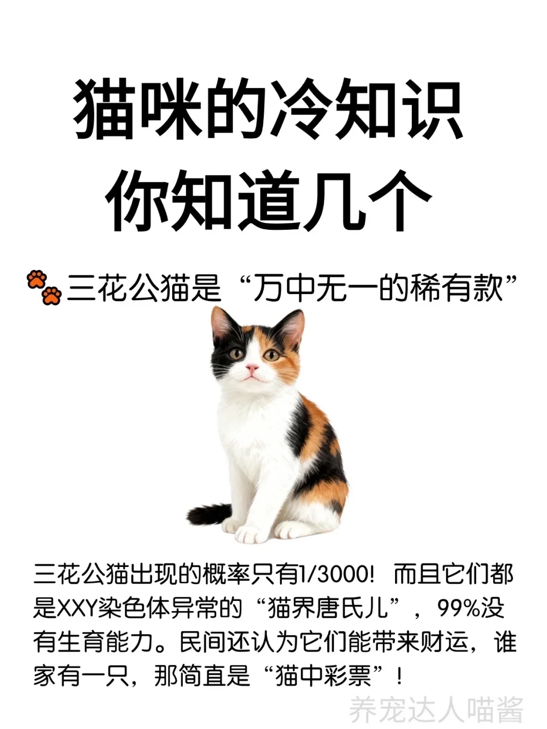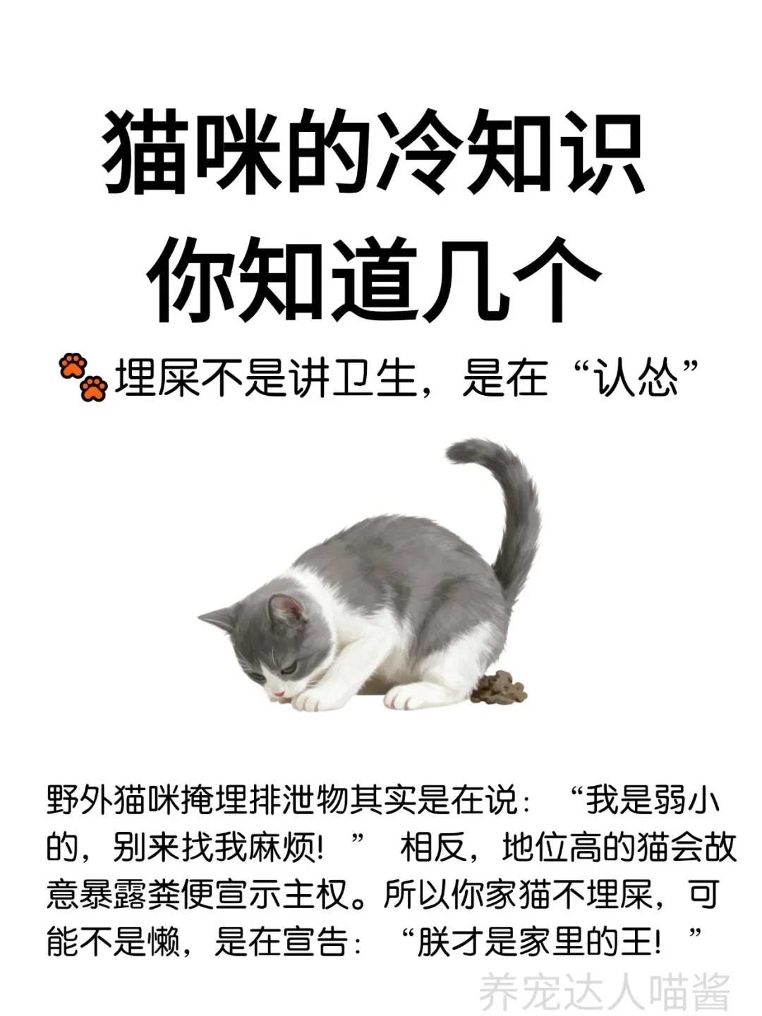 猫咪的世界藏着不少冷知识。它们舌头上的倒刺是角蛋白构成的 “干饭神器”,喝水速度是狗狗的 4 倍,还能把猎物骨头上的肉刮得干干净净。三花公猫堪称 “万中无一的稀有款”,出现概率仅 1/3000,且大多因染色体异常缺乏生育能力。踩奶行为是猫咪在 “找妈妈”,成年后则成了减压方式,踩奶时大脑释放的内啡肽能带来吃巧克力般的快乐。埋屎不是讲卫生,野外猫咪埋屎是在 “认怂”,而地位高的猫会故意暴露粪便宣示主权。它们的尾巴是情绪晴雨表,竖起抖动是兴奋,左右横扫是烦躁。猫咪夜视能力虽强却是近视眼,静止时仅能看清 6 米内物体,还无法识别红色。4 - 6 个月大的猫咪掉乳牙时会把牙齿吞下肚,90% 的铲屎官都没见过。猫砂盆数量建议按猫数量 + 1 准备,摆成等边三角形能让猫咪有 “安全撤退路线”,减少 87% 的乱尿情况。这些冷知识,是不是让你对自家猫又多了几分好奇?