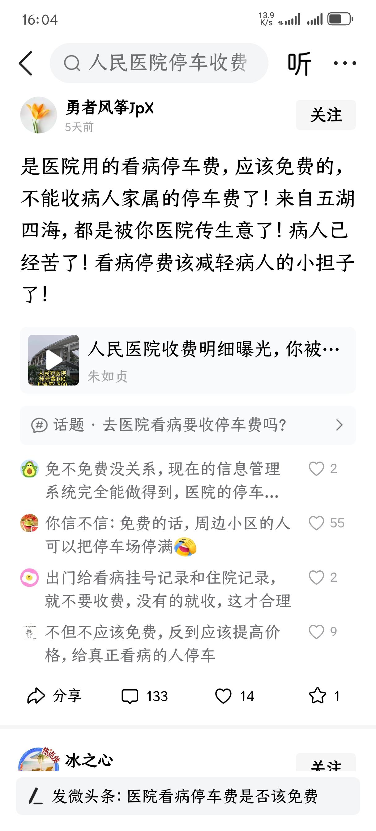 真不知道说什么好了,医院应该所有的免费,而且赠送才行吗? 一点基本常识都不遵守了,遇到医院,所有常识都要颠覆吗? 真的是谁生病谁有理吗? 今天正好也来医院就诊。进医院前,想的是,有个停车位就好。哪里敢想免费停车! 挂号前想的是,能少等一会,看病人少一点,哪敢想免费挂号! 医院的医生好像不要工资一样,医院的水电好像免费一样,医院的地皮好像白给一样,进了医院,啥都想着免费,也不知道怎么想的。