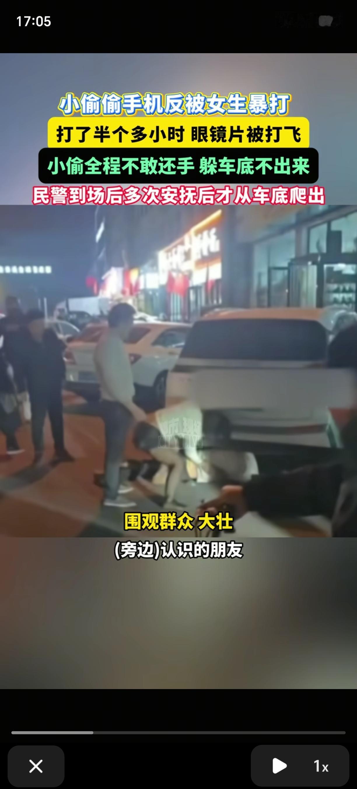 “踢到铁板了!”山西,一女生在商业街逛街时,突然发现手机被偷走,女生并没有求助他人,而是当场反击,甚至一度把小偷打到躲在车底不敢出来,后来还是路人报警,民警赶来后小偷才“获救”,网友:这是女侠啊! 有人夸女生勇敢,遇到不法侵害不怂,敢直接正面硬刚。现在不少人遇到小偷只会自认倒霉,或者忙着报警却让小偷跑了,她这样主动反击,确实给大家出了口气。 也有人觉得女生太冲动,小偷虽然可恨,但万一对方身上有凶器,反抗过程中很可能让自己受伤。到时候手机没拿回来,还得去医院,得不偿失。 商业街人来人往,当时不少路人围观,有人拍视频有人叫好,却没几个人上前帮忙。大家都怕惹麻烦,毕竟谁也不知道小偷有没有同伙,会不会反过来报复。 民警赶到后,一边安抚女生情绪,一边把小偷从车底拉出来带回派出所。小偷被打得鼻青脸肿,嘴里还念叨着没想到遇到这么厉害的对手。 女生说自己平时就喜欢健身,反应比一般人快,当时只想着把手机拿回来,没考虑太多后果。手机里有很多重要资料,要是丢了补办起来太麻烦。 网友的争论还在继续,支持的人说就该给小偷点教训,让他们不敢随便作案。反对的人则认为维权要讲究方式方法,安全永远是第一位的。 其实不管是支持还是反对,大家的初衷都是希望能保护好自己的财产和安全。遇到小偷,勇敢反击值得肯定,但前提是要保证自身安全,必要时还是得依靠民警和周围人的帮助。 这件事你们怎么看?欢迎留言讨论。 来源:都市现场 2025-11-7