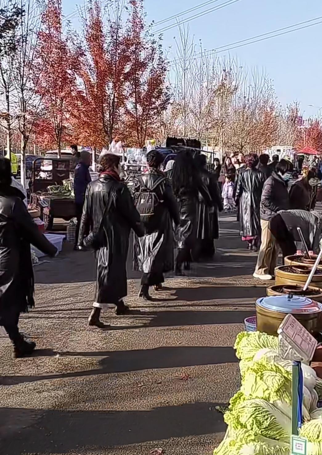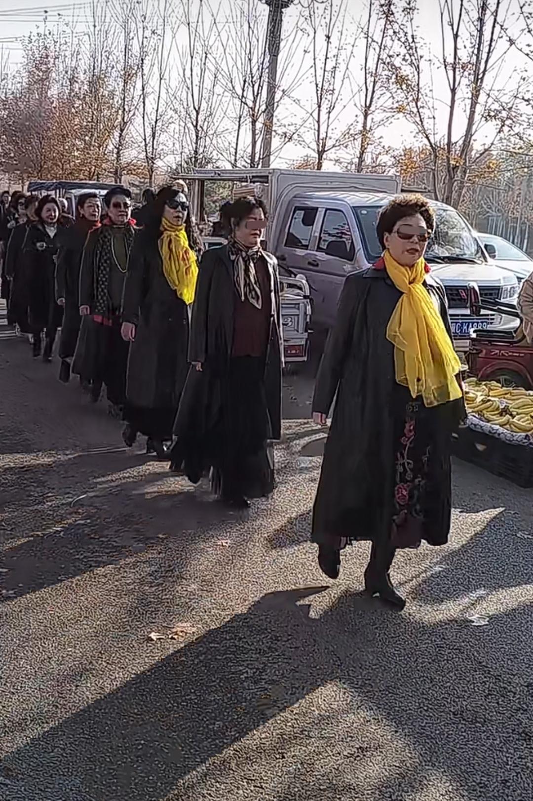 秦皇岛某早市上,由远而近传来一阵有节奏的音乐声,跟随音乐的节奏,走来一排大爷大妈! 他们排队行进,领头的大爷手里拎着一个扬声器,音乐就从这里传出来。 大妈们戴着墨镜,围着彩色丝巾,身披风衣,脚穿皮鞋,神采奕奕,英姿飒爽。 他们从早市的一头,走到另一头,再绕回来,像是在走圈。 而早市上的摊贩和市民见怪不怪,看来早就习以为常。 他们的晚年生活真幸福。