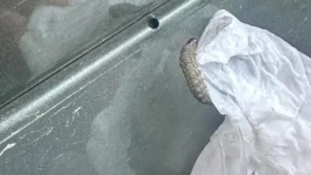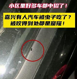 11月6日,有嘉兴市民在网上发了自己刚提的新车被虫“咬”的照片,并提醒,谨慎停在栾树下,它还会往里钻。从照片上看,虫子呈棕褐色,细看,两侧有多只绒毛状的“小细脚”,车主说的被咬部位应该是车子的塑料件连接处,有几处明显的小窟窿,“一边咬一边往里钻”。