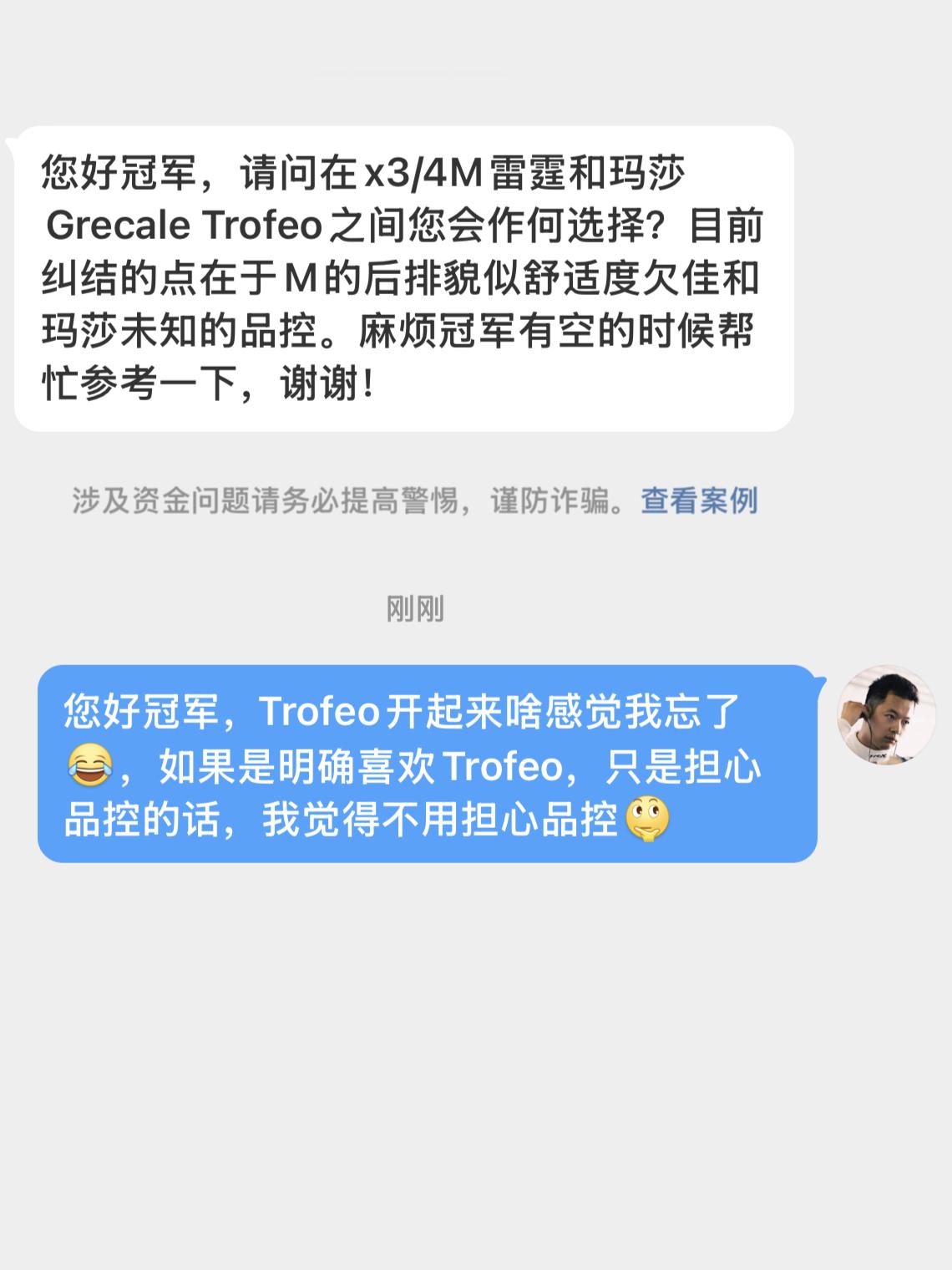 您好冠军,Trofeo开起来啥感觉我忘了[笑cry],如果是明确喜欢Trofeo,只是担心品控的话,我觉得不用担心品控[思考]