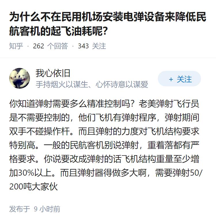 为什么不在民用机场安装电弹设备来降低民航客机的起飞油耗呢?
