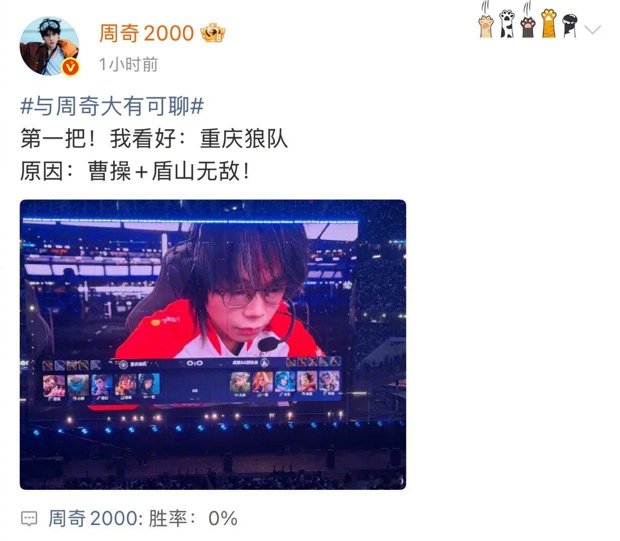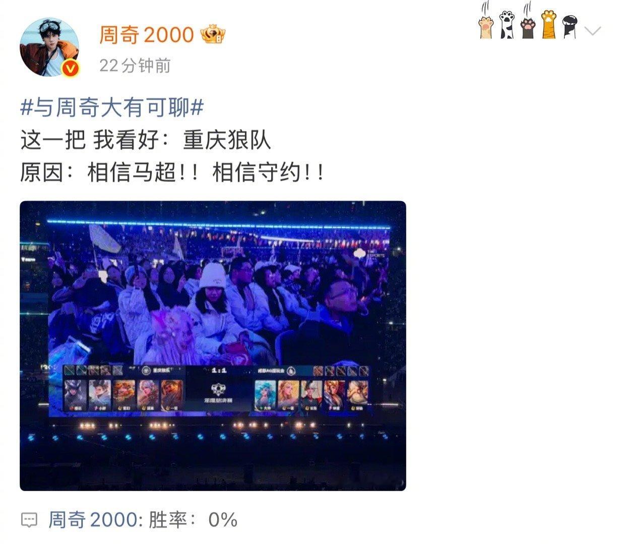 周奇超话实时观赛KPL总决赛 九敏!你小子是不是得了gemini真传!怎么你也开始毒奶了,预测三把胜率0%