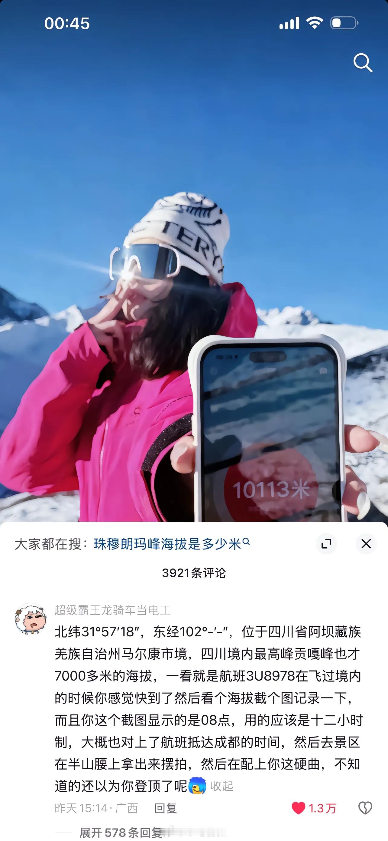 网友:珠穆朗玛峰也不过8848米,你这是在爬什么山?