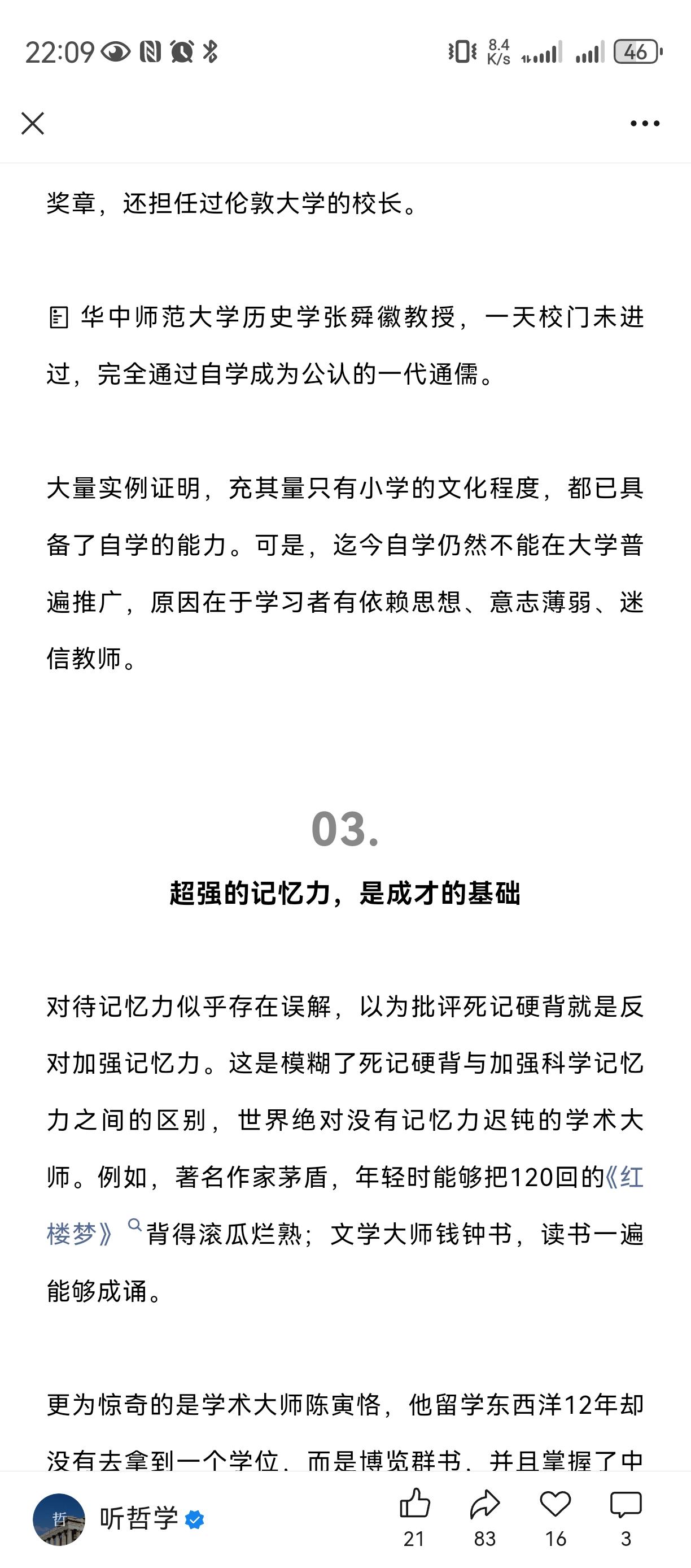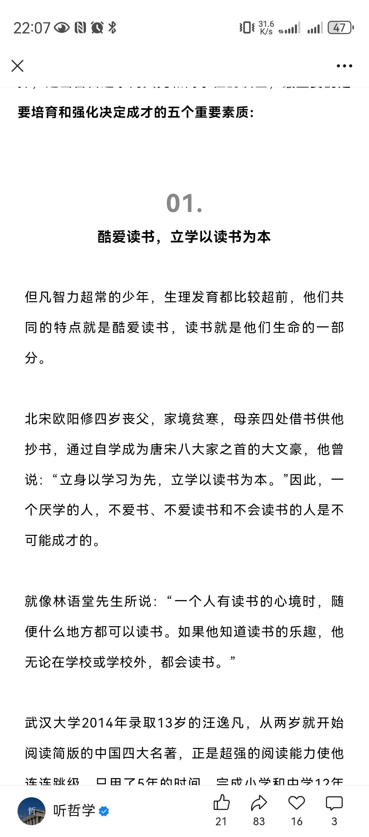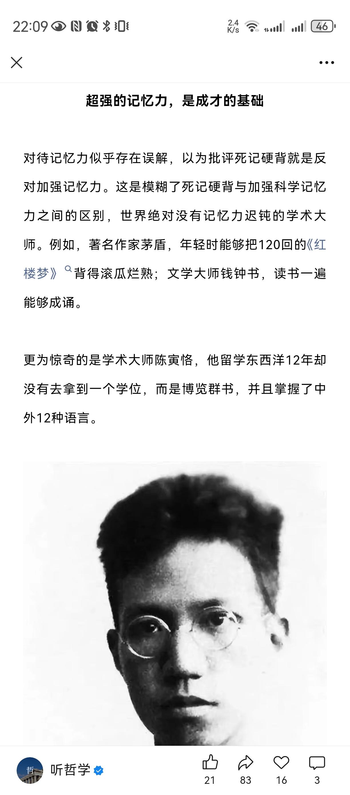 酷爱读书, 善于自学, 超强记忆力, 文理兼修。 我一个混学术圈的同学, 当时读研究生时侯就必须买书, 几年研究生读下来, 积累了几箱书, 毕业读北大博士, 才帮他寄到北京去。 如今成为了学者教授 , 最喜欢的嗜好之一就是灌书店读书经验