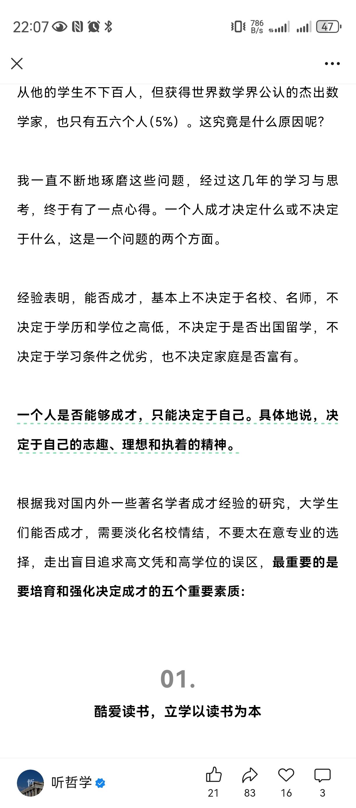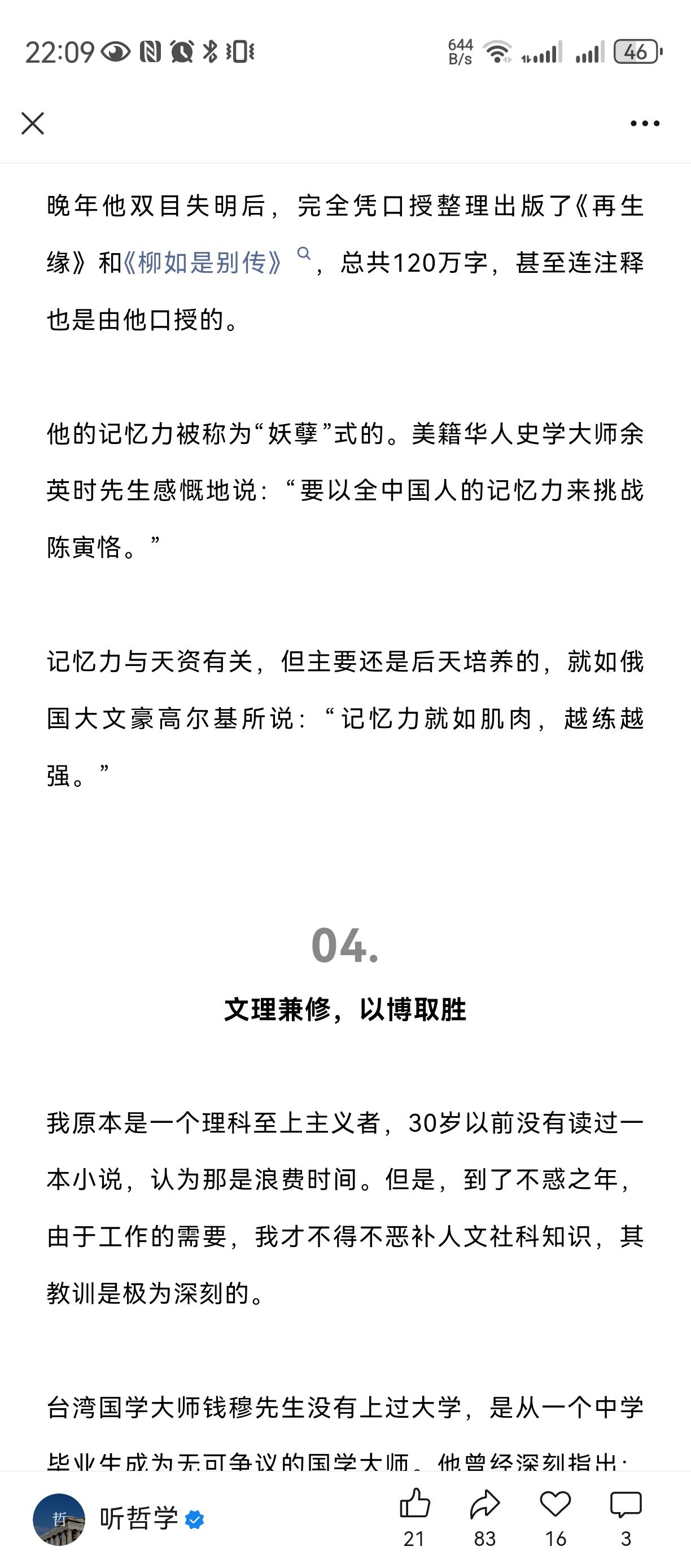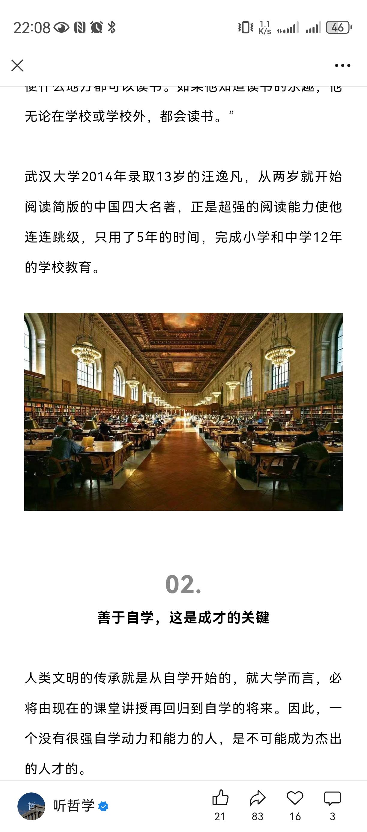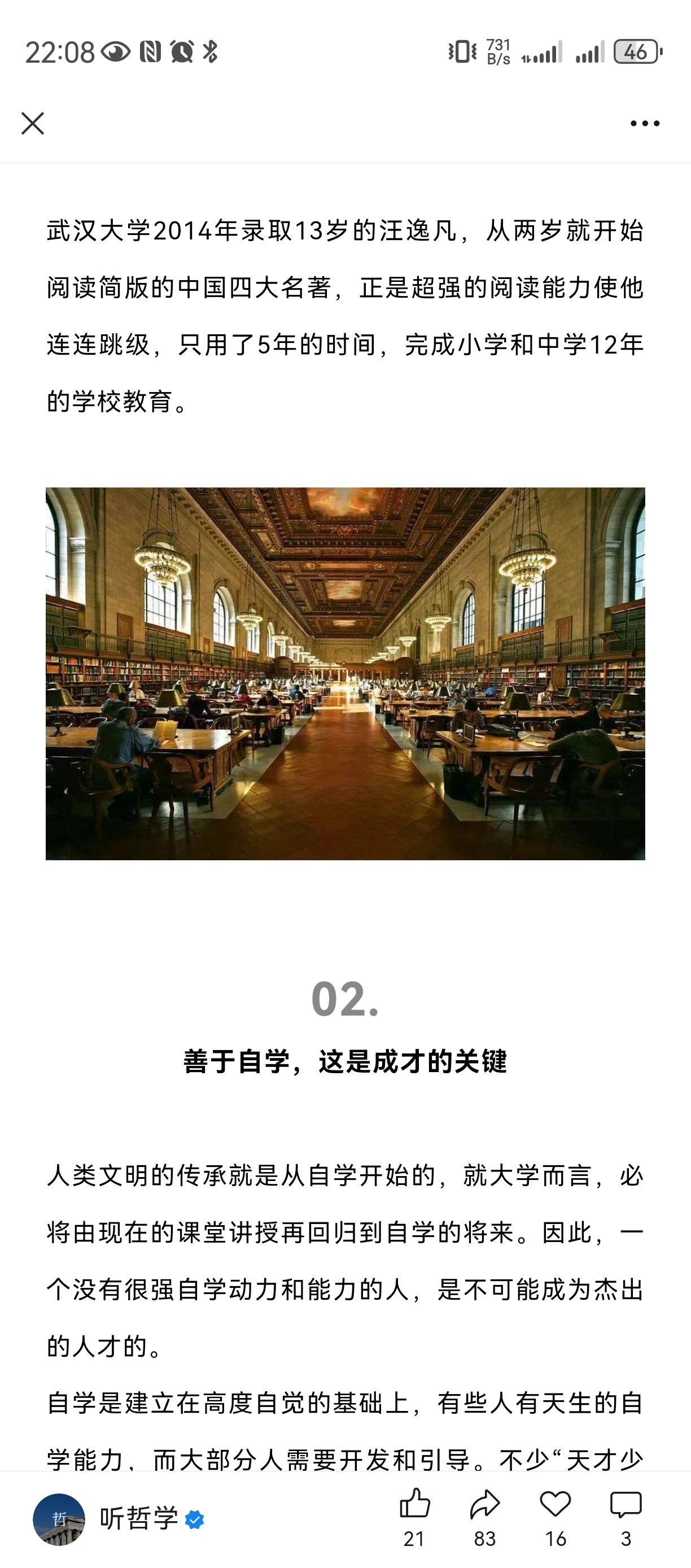 酷爱读书, 善于自学, 超强记忆力, 文理兼修。 我一个混学术圈的同学, 当时读研究生时侯就必须买书, 几年研究生读下来, 积累了几箱书, 毕业读北大博士, 才帮他寄到北京去。 如今成为了学者教授 , 最喜欢的嗜好之一就是灌书店读书经验