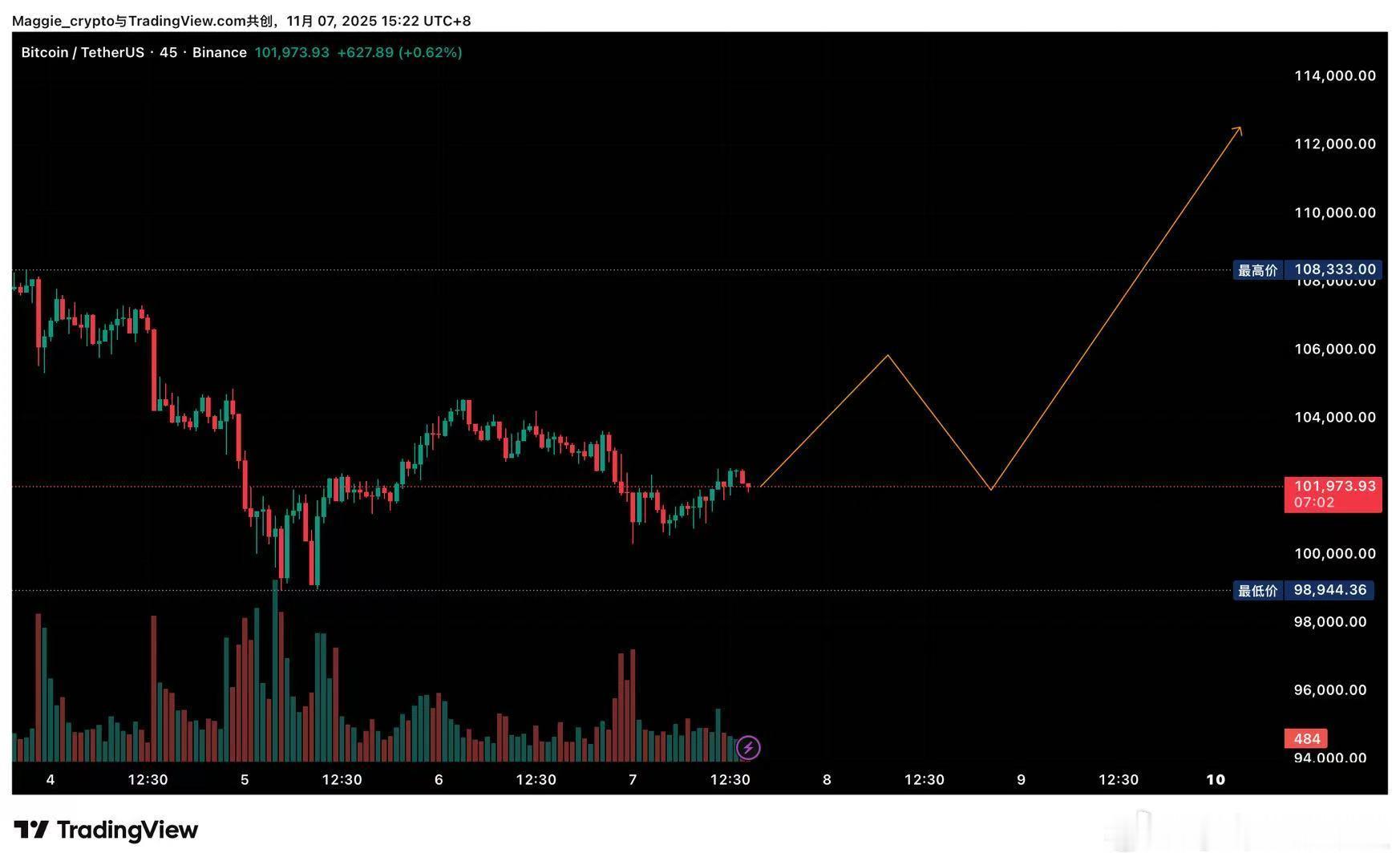 BTC 主力节奏更新比特币在经历本轮牛市以来最大规模的洗盘后,技术形态已顺利走出
