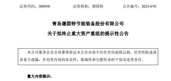 【德固特重大资产重组或将终止】德固特(300950)筹划了数月的重大资产重组或将终止。