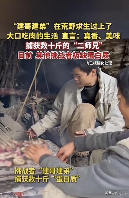 小时候看鲁滨逊漂流记,就埋下了去当个野人生活的向往,那简直超级有趣。 看了荒野求生后,这个想法就彻底没有了,没有打火机,估计自己生火🔥都是个问题! 很多事情,我们没有经历过,看着都会想这不是很简单的事情吗?书上都说了砖木取火,理论知识我们可是学了不少的,但是看了荒野求生,光生火都得半个小时,选手们为了保持火种也是想尽办法,就说明生火是个技术活,理论和实际隔着一道鸿沟。 我们以为大山里,森林里食材遍地,可是我们连菜都认不全,何况不常见的植物,还担心会不会中毒,不敢瞎吃。 以前看电视剧,盐是战备时重要的物资,看了荒野求生,才更懂得盐的重要性,明显可以感觉到到他们因摄入盐不足时的乏力、状态下滑的样子。 节目看到最后,选手们的精神状态也各不相同,有人愁就有人欢喜。那对抓到野猪的兄弟俩,吃得那叫一个香,嘴角都不由上扬——不过这种幸运时刻,终究是极少数。