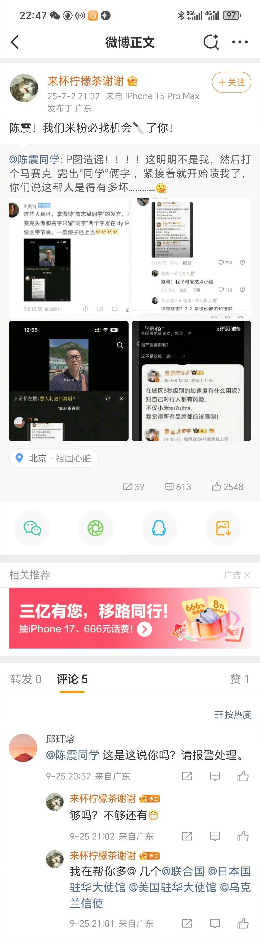 陈震:投诉 超过时效期了应该怎么办?[what] ​​​ 网友:就拿他练练手吧,报警起诉他。 这个情况并不是简单的骚扰了,这个完全可以报警或者是进行起诉,这个人的气还挺重的呢。 大家是怎么看的?欢迎评论区留言。