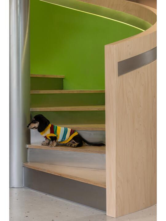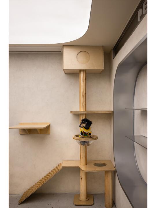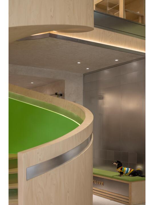 🧀 汲取自然界的勃勃生机为灵感,「捋毛」品牌标志以奶酪形态呈现,传递生态清新活力,以生趣盎然的方式,引导视觉互动体验。 🧀 原木旋转楼梯如自然生长的藤蔓盘旋而上,以优雅的曲线贯穿空间,拾级而上,绿意环绕,与自然赴约。 🧀 去除冗余,兼顾功能性与实用性,采用线性元素布局来引导视线,聚焦于宠物商品的展示核心,优化用户购物体验。 🧀 项目:公司:DESIGN STUDIO 摄影:季光 养宠倡议 室内设计 空间设计 设计案例分享 商业空间设计 店铺设计 宠物店设计 人宠友好 成都周边去哪儿玩 成都探店