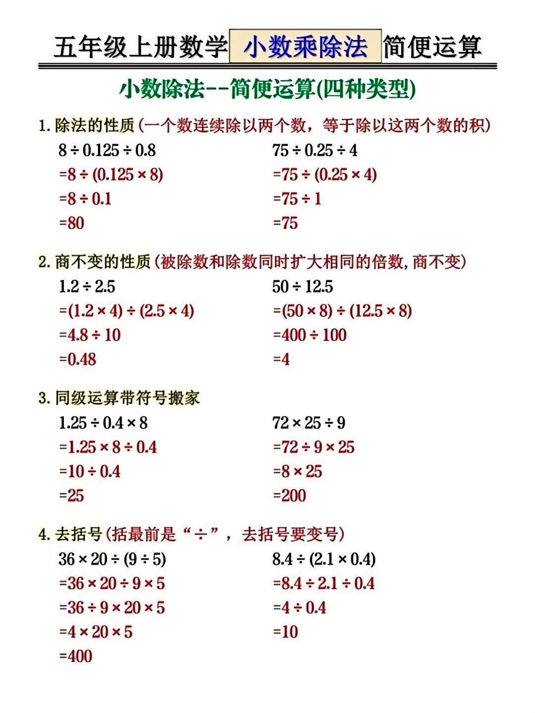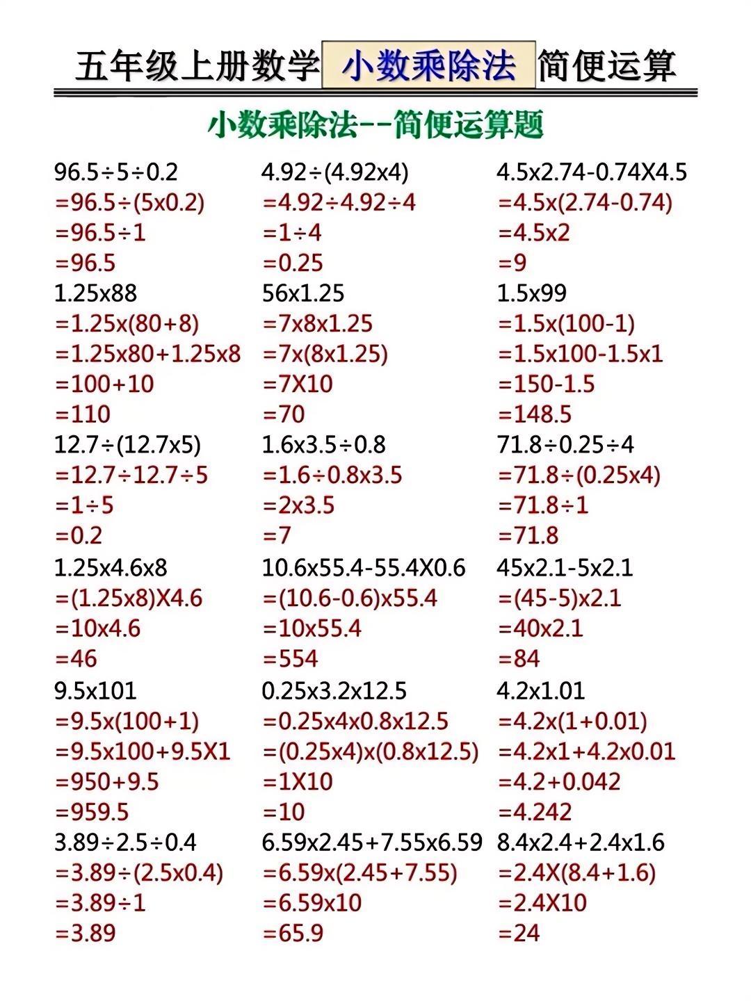 五年级上册数学:小数乘除法简便运算,孩子掌握牢固了,考试才能少丢分!