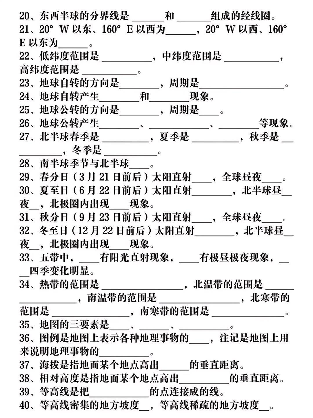 七上地理期中必背知识点填空复习,收藏给孩子吃透了,保管考试一分不丢!