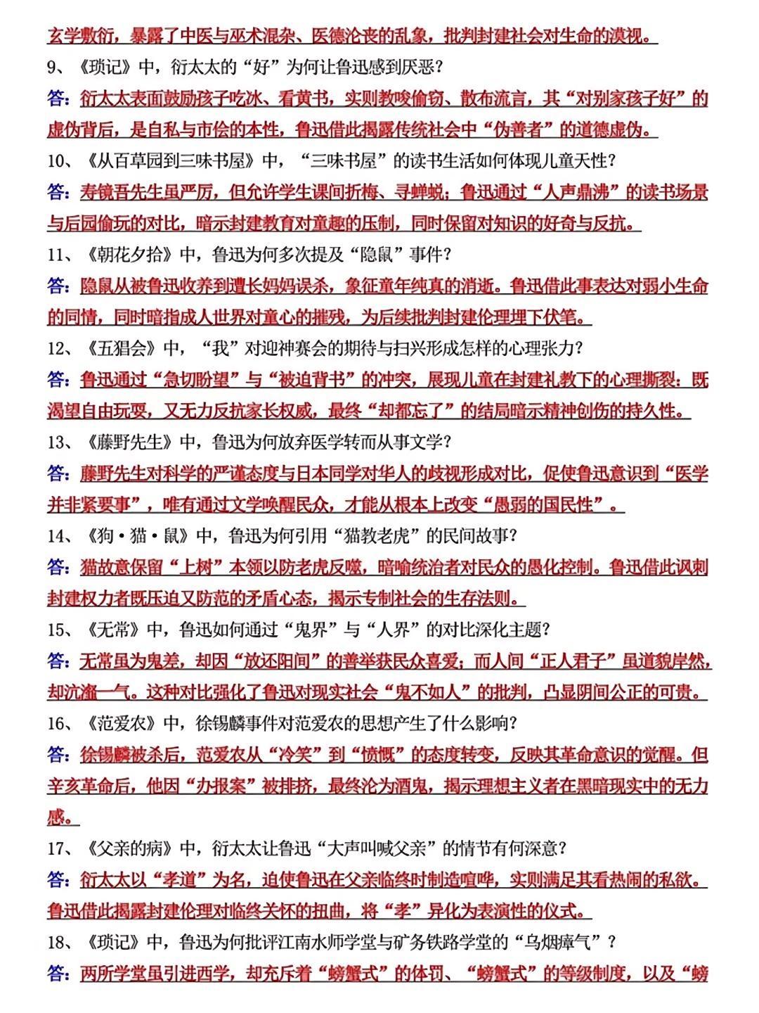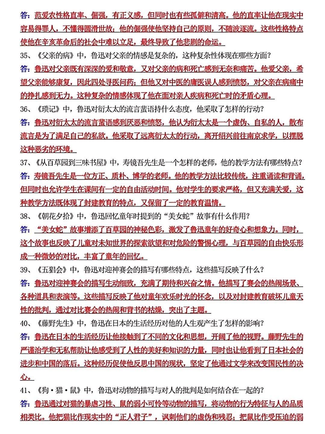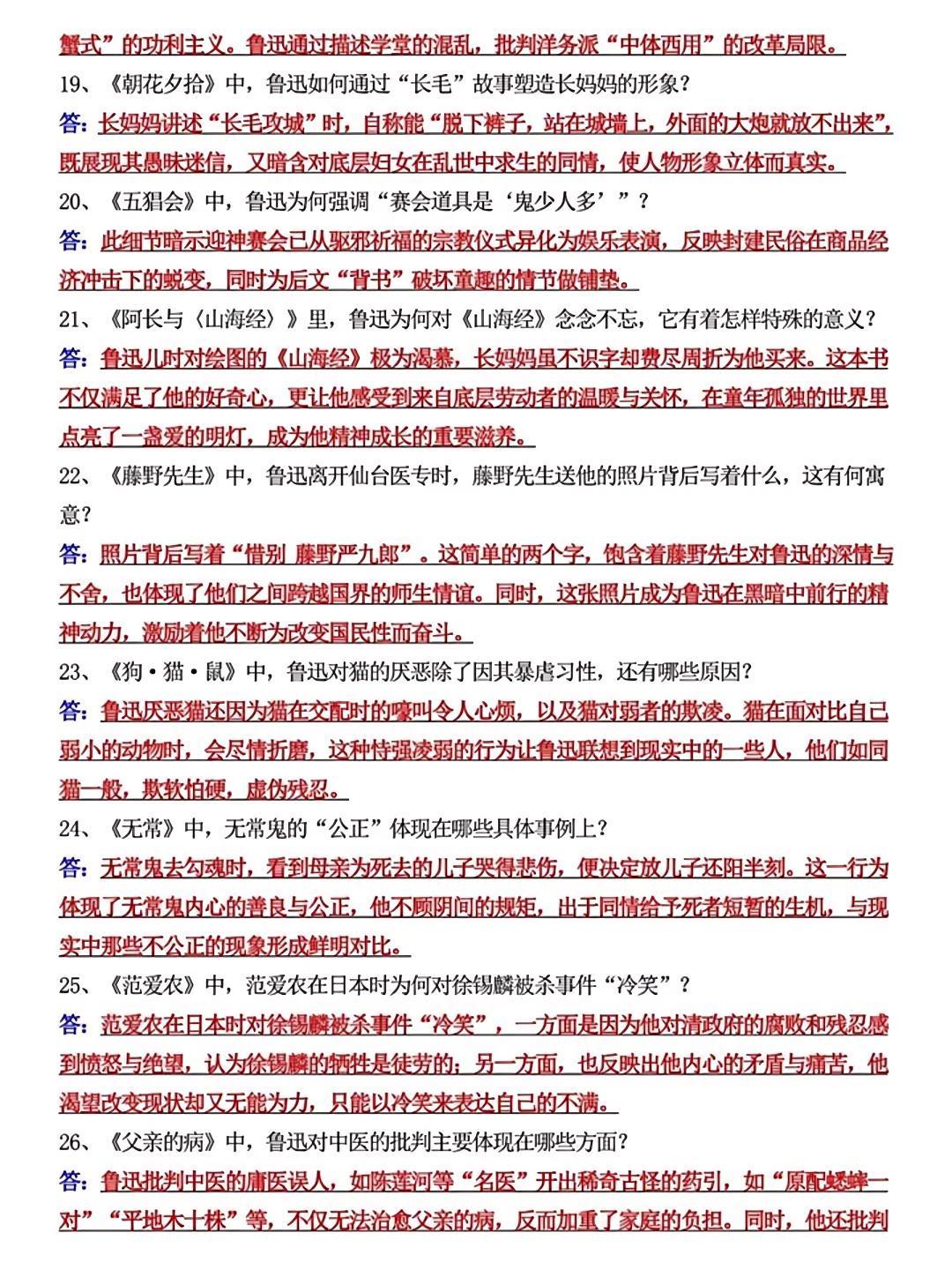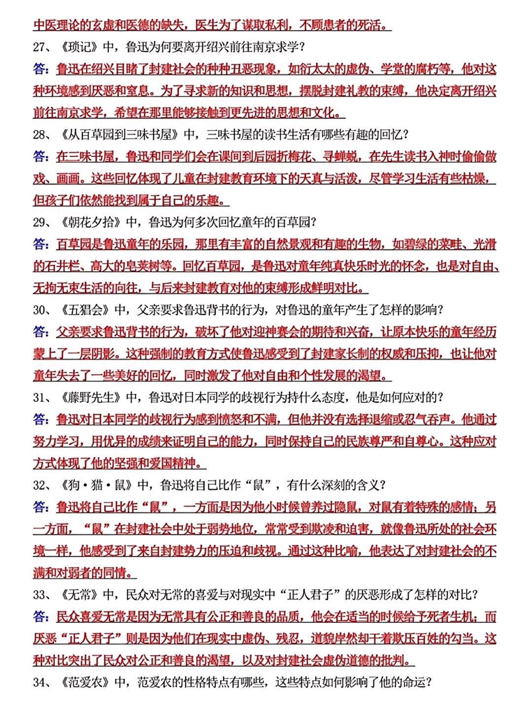 七上语文《朝花夕拾》必考简答题55道,是孩子查漏补缺的好帮手,抓紧时间收藏起来吧!