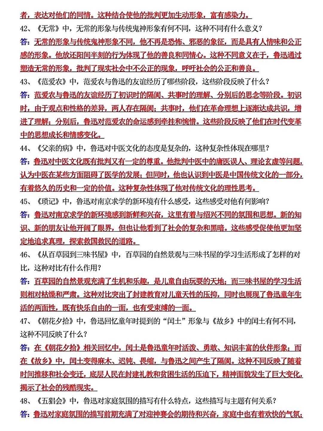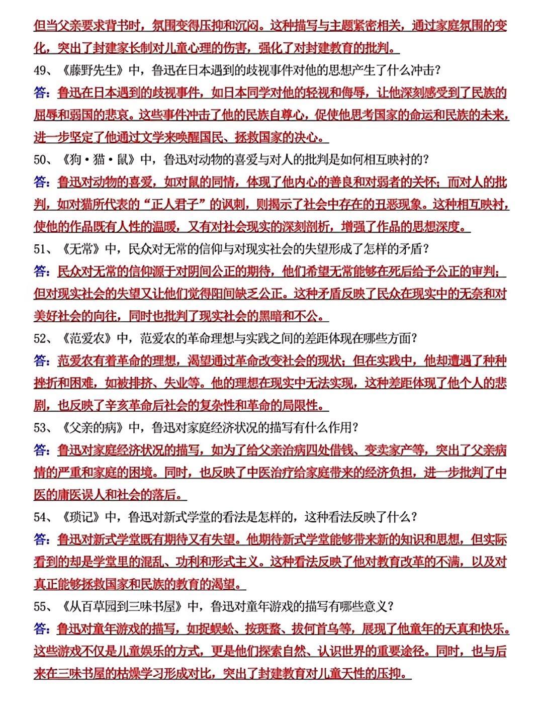 七上语文《朝花夕拾》必考简答题55道,是孩子查漏补缺的好帮手,抓紧时间...