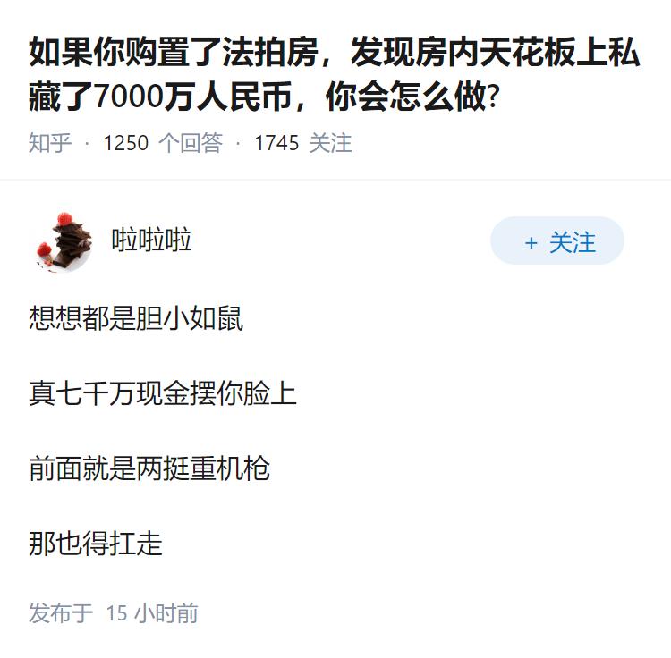 如果你购置了法拍房,发现房内天花板上私藏了7000万人民币,你会怎么做?