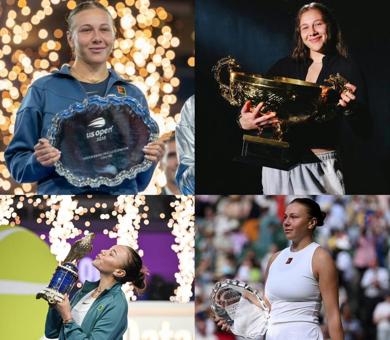 阿尼西莫娃的赛季总结来了! 状态回升的速度,堪比坐火箭! 排名从2024年初400+,上升至2025年初的第18,到现在的top5。 四大满贯成绩一次比一次好。 澳网第二轮、法网第四轮、温网亚军、美网亚军,离大满贯冠军只有一步之遥。 1000赛拿到两个冠军:多哈、中网。 500赛获得伦敦“女王杯”亚军。 首进年终总决赛,就打入了四强。 今年赛季打败了四大满贯冠军:温网击败萨巴伦卡、美网击败斯瓦泰克、中网击败高芙、年终小组赛击败凯斯。 草地、红土、硬地都打得不错,整个赛季尤其是后半段一路高歌猛进。 现在离超顶尖高手只差一个心态的成长,来保持较高的稳定性。 希望今年决赛的一些失利可以帮助阿曼达更快的迈入下一个阶段,期待早日拿到大满贯! #新锐创作者成长计划#