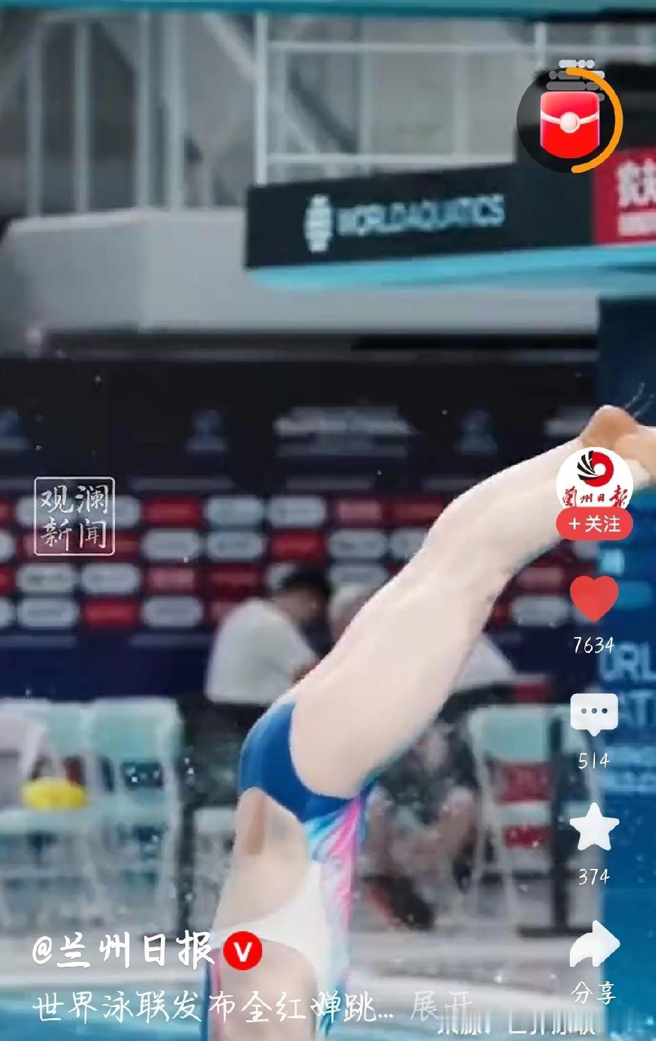 世界泳联放大招!全红婵慢动作跳水,这水花消失术绝了 世界泳联刚发的全红婵跳水