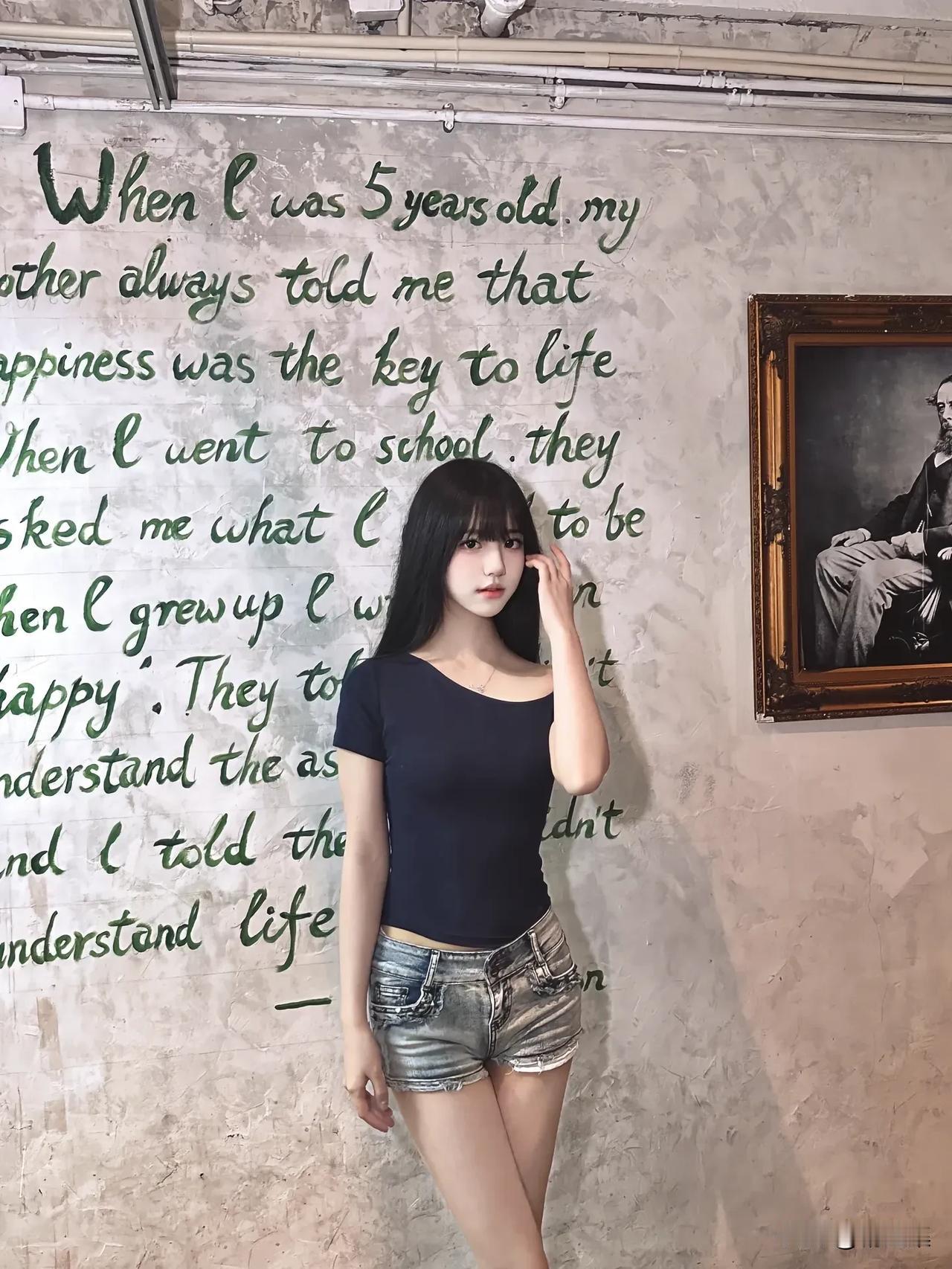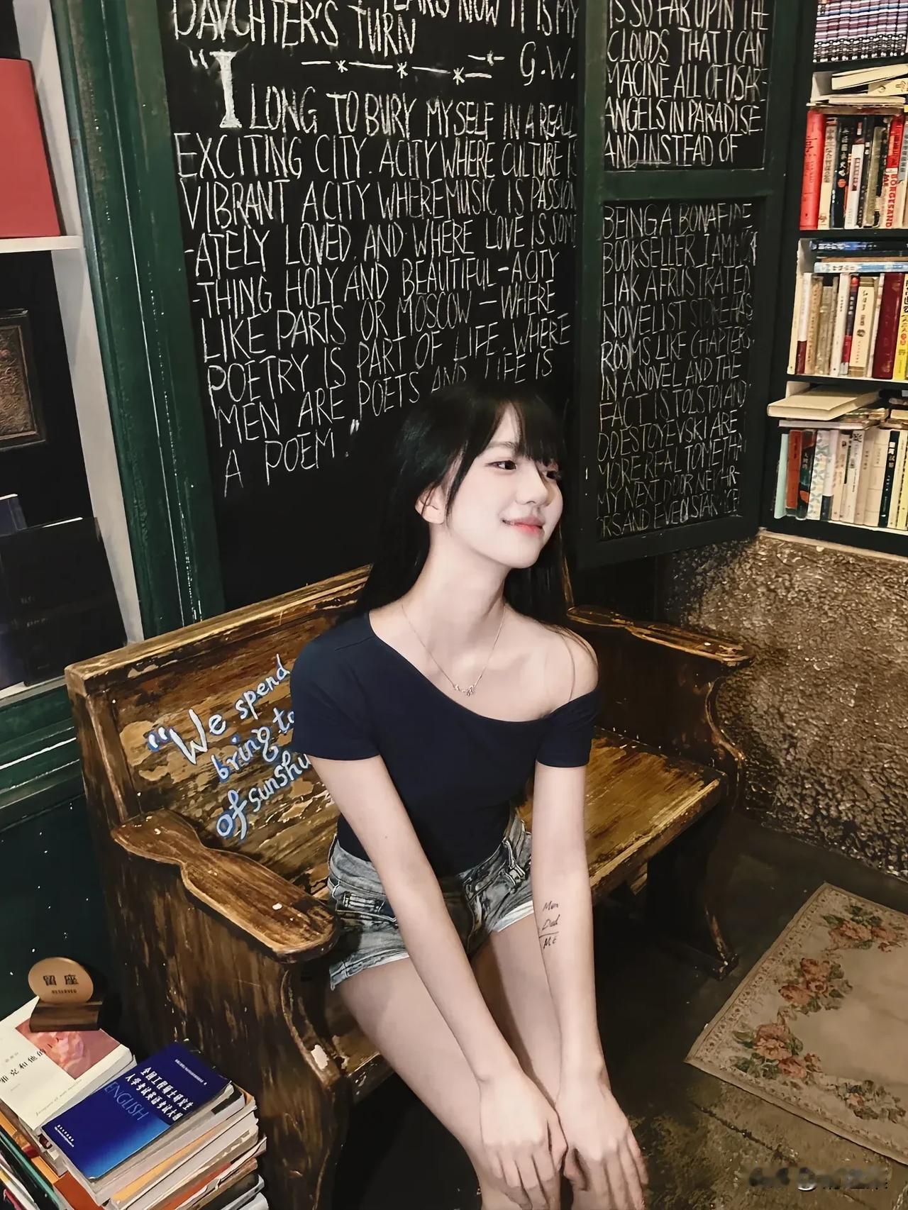 夜晚街头的甜美少女,红白格子裙,微笑动人