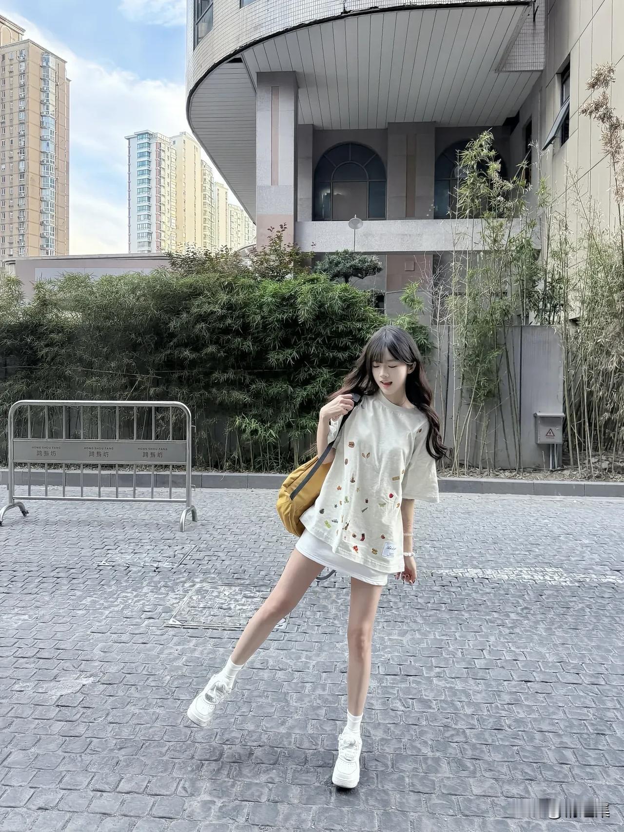 夜晚街头的甜美少女,红白格子裙,微笑动人
