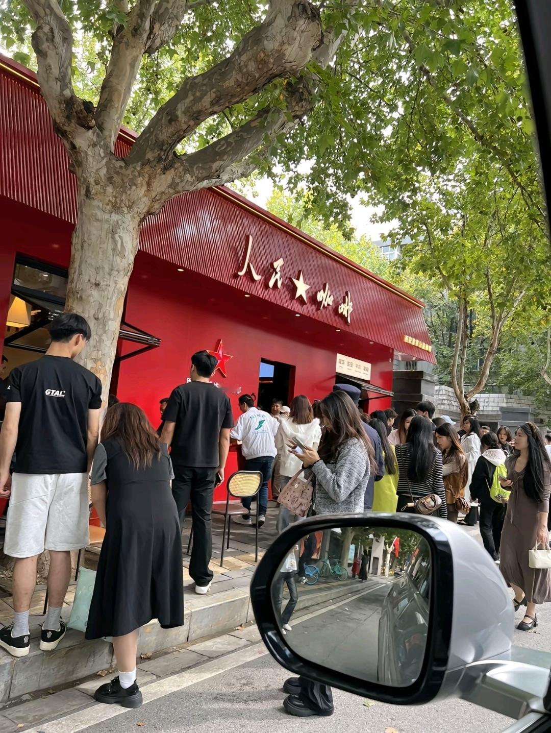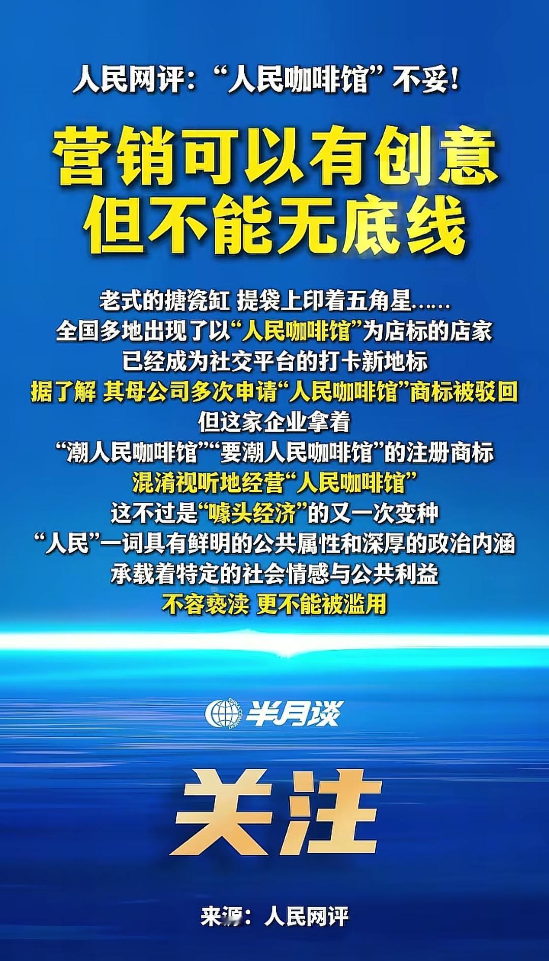 真是不怕坏人绞尽脑汁,就怕蠢人灵机一动,能想到这种装修风格的人也是灵机一动!这是赚钱没有底线了,利用情怀赚钱可以理解但你踩着红线了。大红色门头和红星,包装印五角星,还故意把注册名里的潮字藏了,只露人民咖啡,这不就是故意蹭公共符号吗?你可是抓住了流量密码,分店开了那么多家。好在监管已经盯上了!