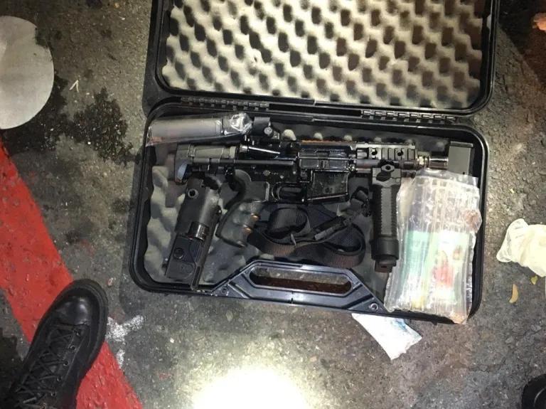 台湾高雄警匪枪战 高雄市警察局治安总队警察于凌晨3时30分左右在三民区接近一辆可疑汽车,并命令3名男性乘客下车。男人们拒绝了。 一名警察拔出手枪,命令这些人下车。坐在后座的43岁犯罪嫌疑人陈某打开车门,用手枪瞄准警官并扣动扳机。两名警官立即还击。据联合报报道,警员共开了22枪,其中一枪击中嫌疑人左腹部。 枪战发生在一家24小时营业的家乐福超市外。 高雄一家医院的医生告诉媒体,子弹击中嫌疑人的左髋骨并滞留在右肺,导致大量内出血。嫌疑人对医疗没有反应,被宣布死亡。 控制住另外两名嫌疑人后,搜查车辆后发现两支冲锋枪、四支改装手枪和 305 发子弹。警方还查获大量安非他明和海洛因以及新台币495,000元现金。 死亡嫌疑人因武装抢劫、毒品犯罪和恐吓罪名被通缉。另一名犯罪嫌疑人洪因毒品罪被列入通缉名单。
