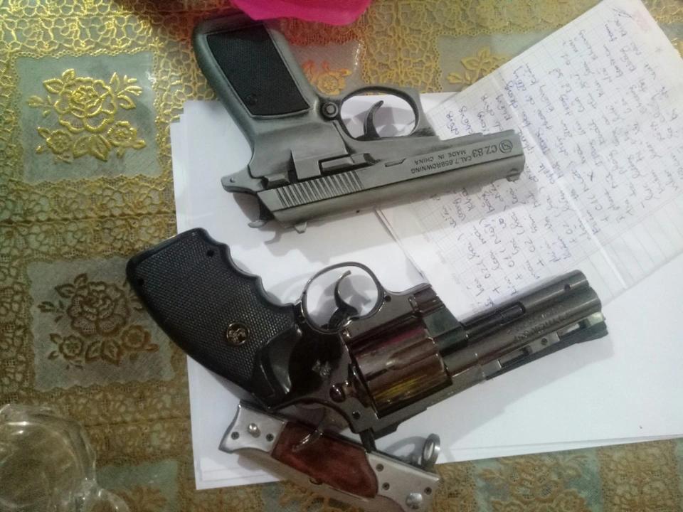 越南当铺老板的武器 坚江省富国县安泰镇警方暂时扣押了1200万越南盾的现金和多副扑克牌。通过快速现场检查,警方还发现该当铺老板(1990年出生)藏有 K59军枪(装有7发子弹)、铅弹枪以及多把刀具和砍刀。