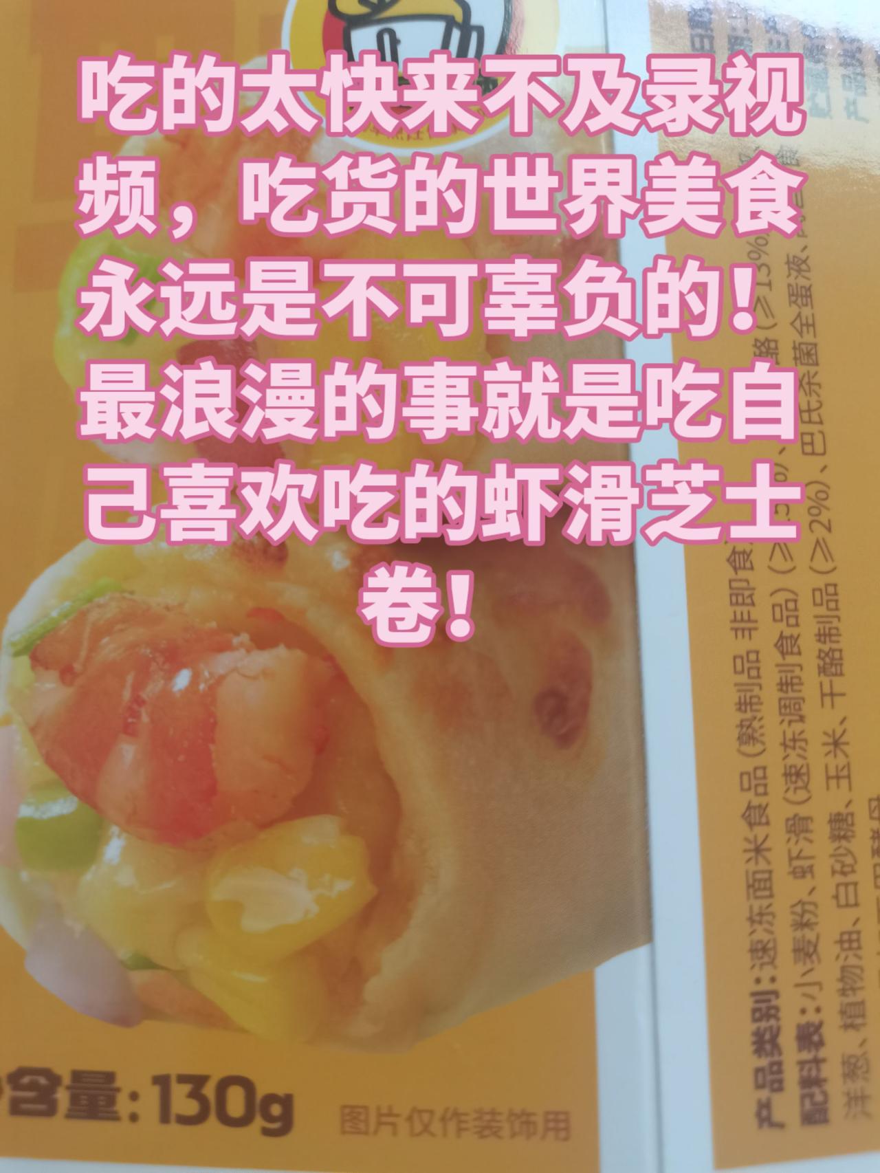 已经替大家品尝过了,不好吃一点都不好吃,劝大家别买!千万别买!冬天早上起不来饿着,晚上肚子咕咕叫饿着,孩子大人一起饿着!饿着一劳永逸,既省钱又减肥!劝大家千万别买这个与辉同行的虾滑芝士卷!不好吃一点不好吃!听话别买!我担心你吃一次就忘不掉,吃一次就爱上!