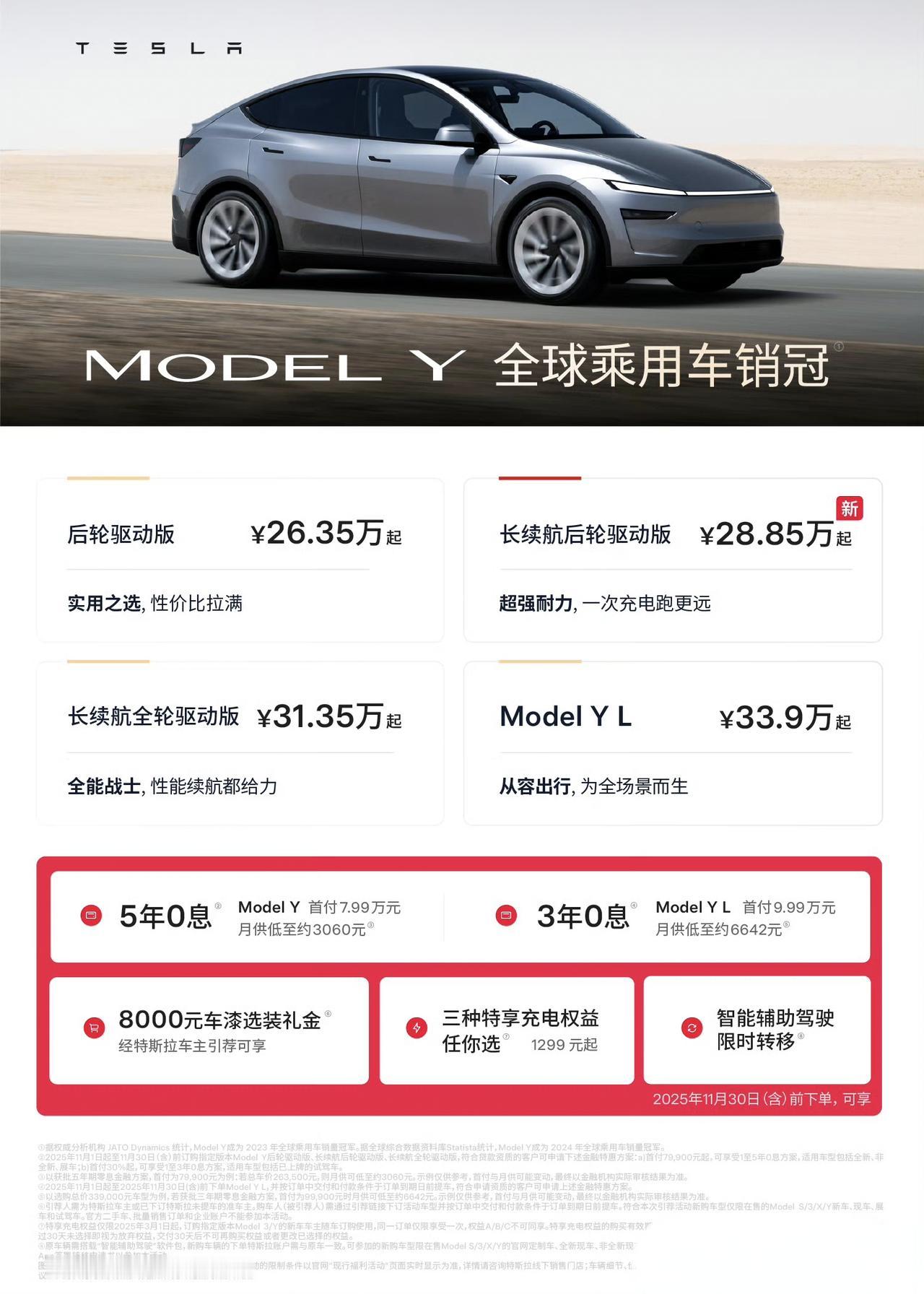 特斯拉ModelY长续航版本出两驱了,续航来到821km(CLTC),价格28.8万,这个续航真是够用的不行,去哪都不怕。 之前毛豆y长续航都是四驱,但是很多人其实不需要四驱,两驱就够了,这下把续航拉长,价格还便宜了,更多人会选择一个长续航两驱。 长续航821km后驱: 28.8万 长续航750km四驱: 31.35万 标准续航593km后驱: 26.3万 ModelY长续航后轮驱动版28.85万起【来自懂车帝车友圈】