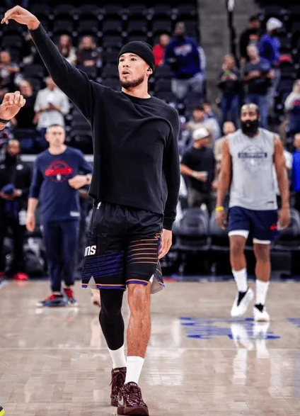 NBA常规赛,太阳将客场挑战快船。 赛前,太阳官方晒出布克的热身照,哈登则在他的身后。 “布克与大胡子!(Book ✖️ Beard)”太阳官方附文道。