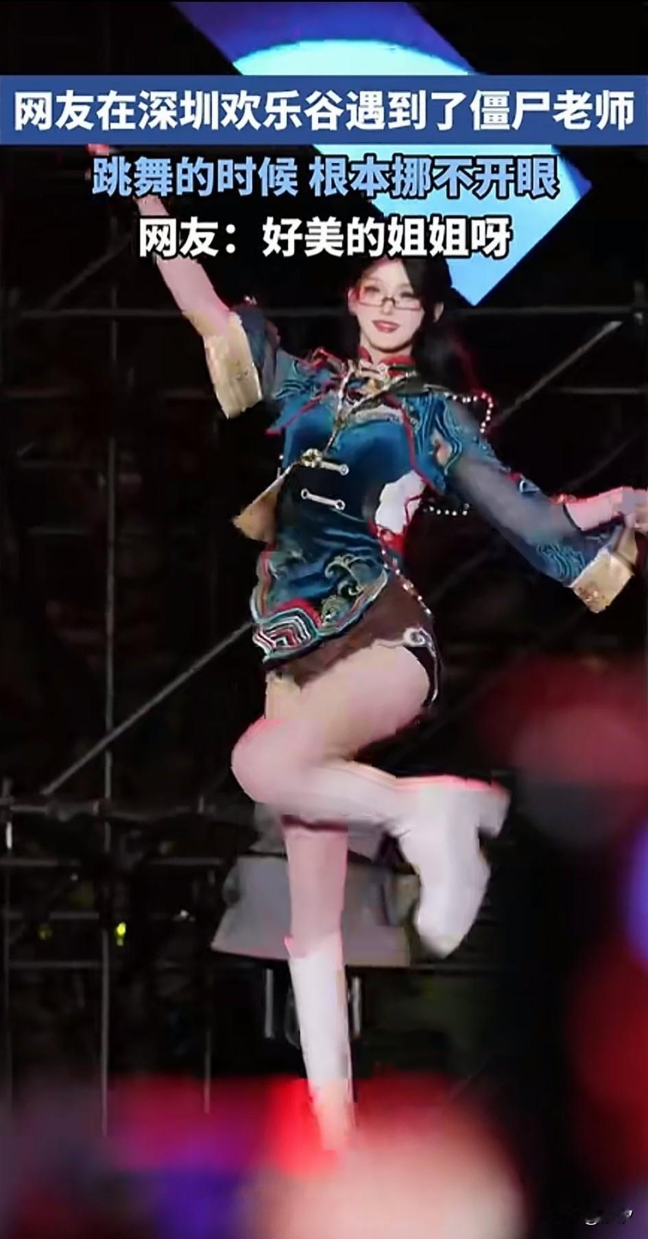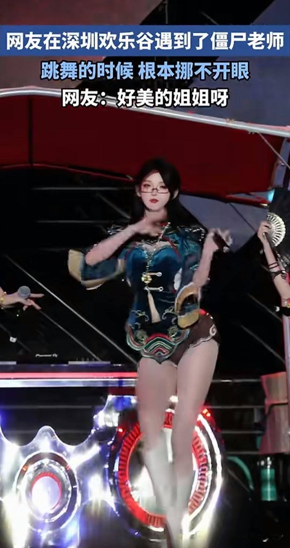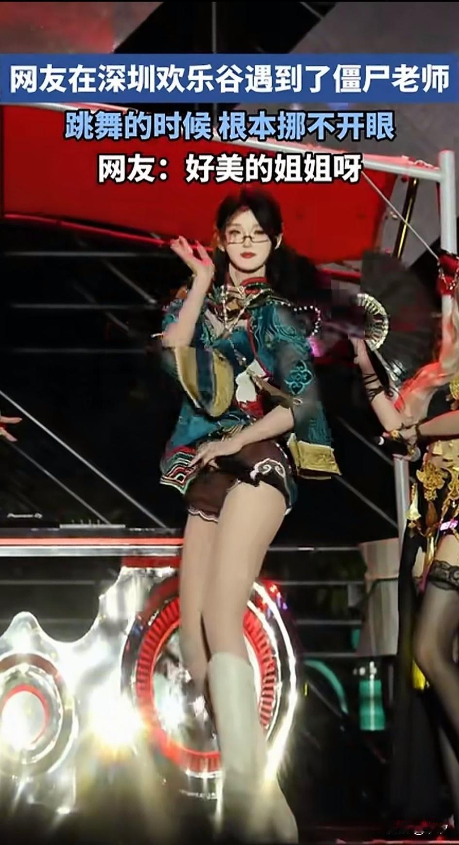 僵尸姐姐在深圳欢乐谷跳舞, 精美的服饰加上那眼镜, 把现场的男观众魂都勾走了, 所有人都停留下来, 观看僵尸姐姐跳舞, 超短裤更显得她的腿特别长, 有网表示看她跳舞, 眼睛完全挪不开, 表情也很丰富可爱, 这造型充满了青春的气息, 先不说素颜怎么样, 这舞蹈确实够招惹男人喜欢的, 怪不得会有这么多粉丝呢! 大家觉得僵尸姐姐跳的好吗? 欢乐谷跳舞 深圳欢乐谷女团 僵尸小女孩跳舞 万圣节僵尸跳舞